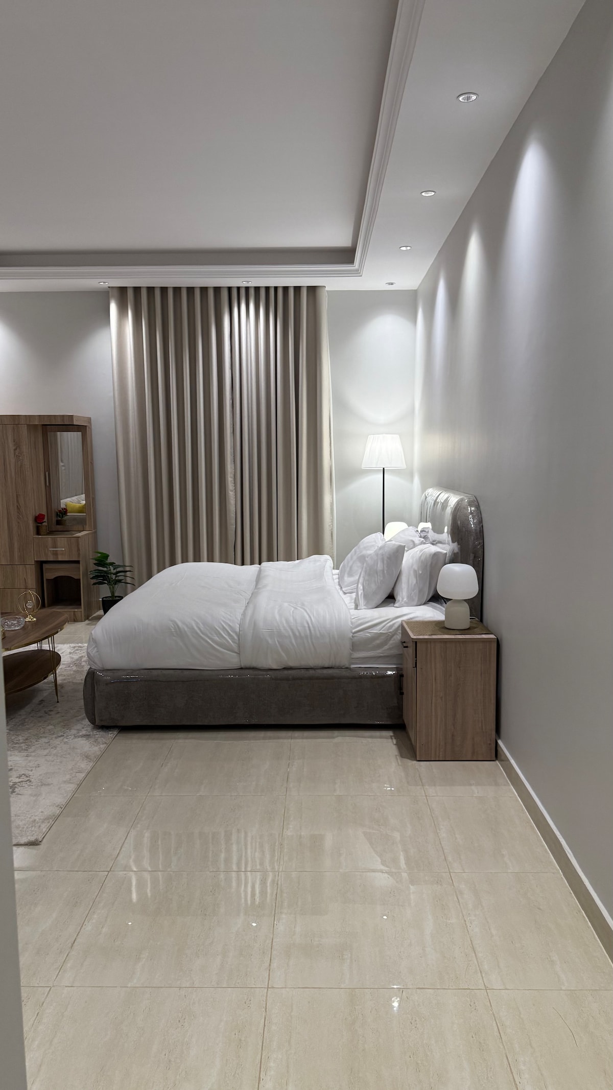 New & Luxurious Studio with a stylish hotel design in a quiet & secure neighborhood in the heart of Madinah Cleanliness is our priority we follow the cleaning protocol for airbnb The studio is newly furnished in July 2025 with an area of 35 meters and contains 2 beds and a seating area with a sofa and a bathroom, equipped with a smart TV, a refrigerator, a microwave, a stove, a kettle and a steam iron Places near 13 minutes to the Prophet's Mosque 4 minutes to the Prophet's Mosque bus 10 min. to Quba Mosque 6 minutes to Al-Haramain Railway Station 17 minutes to the airport Dozens of restaurants, cafes, grocery, and pharmacy near you