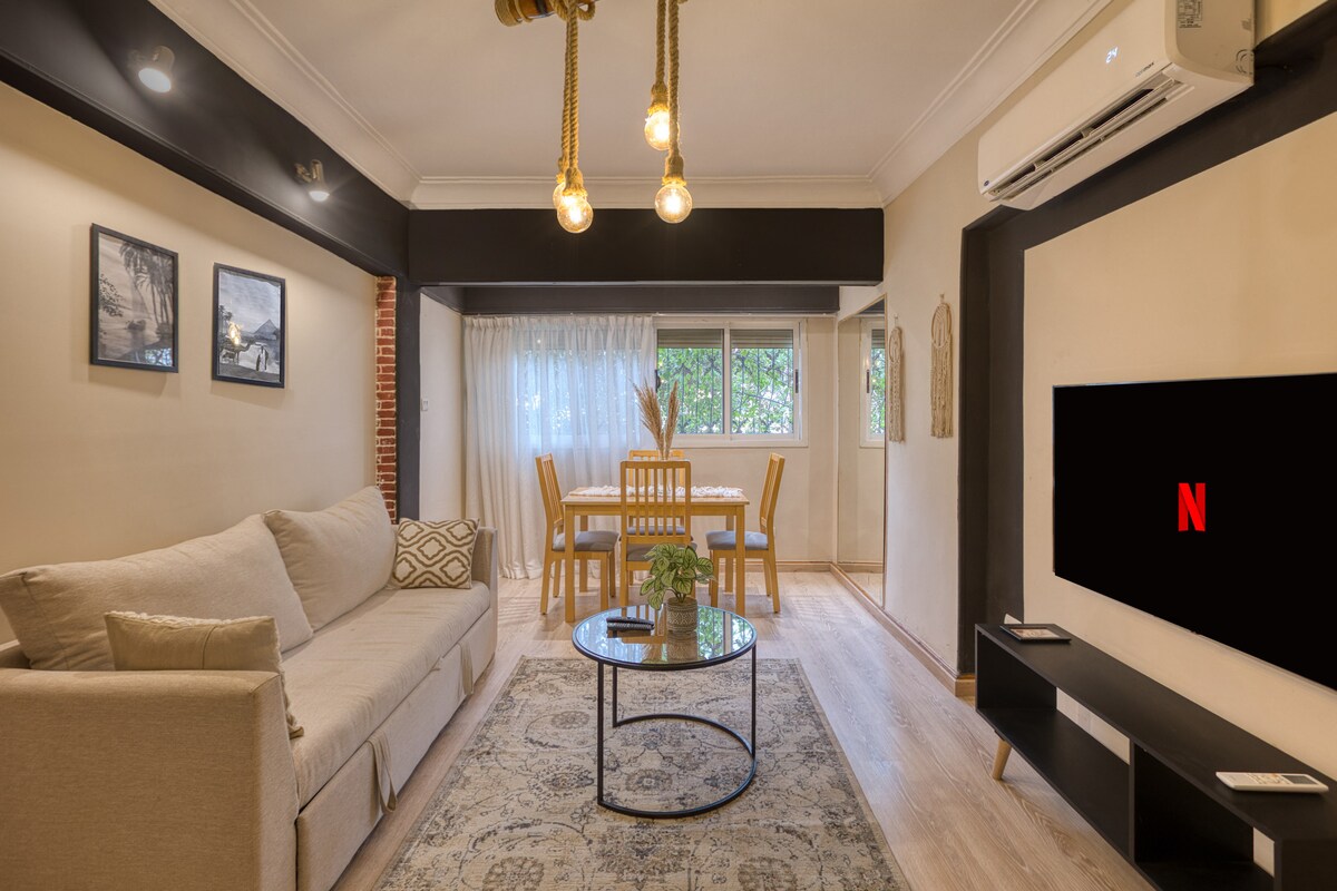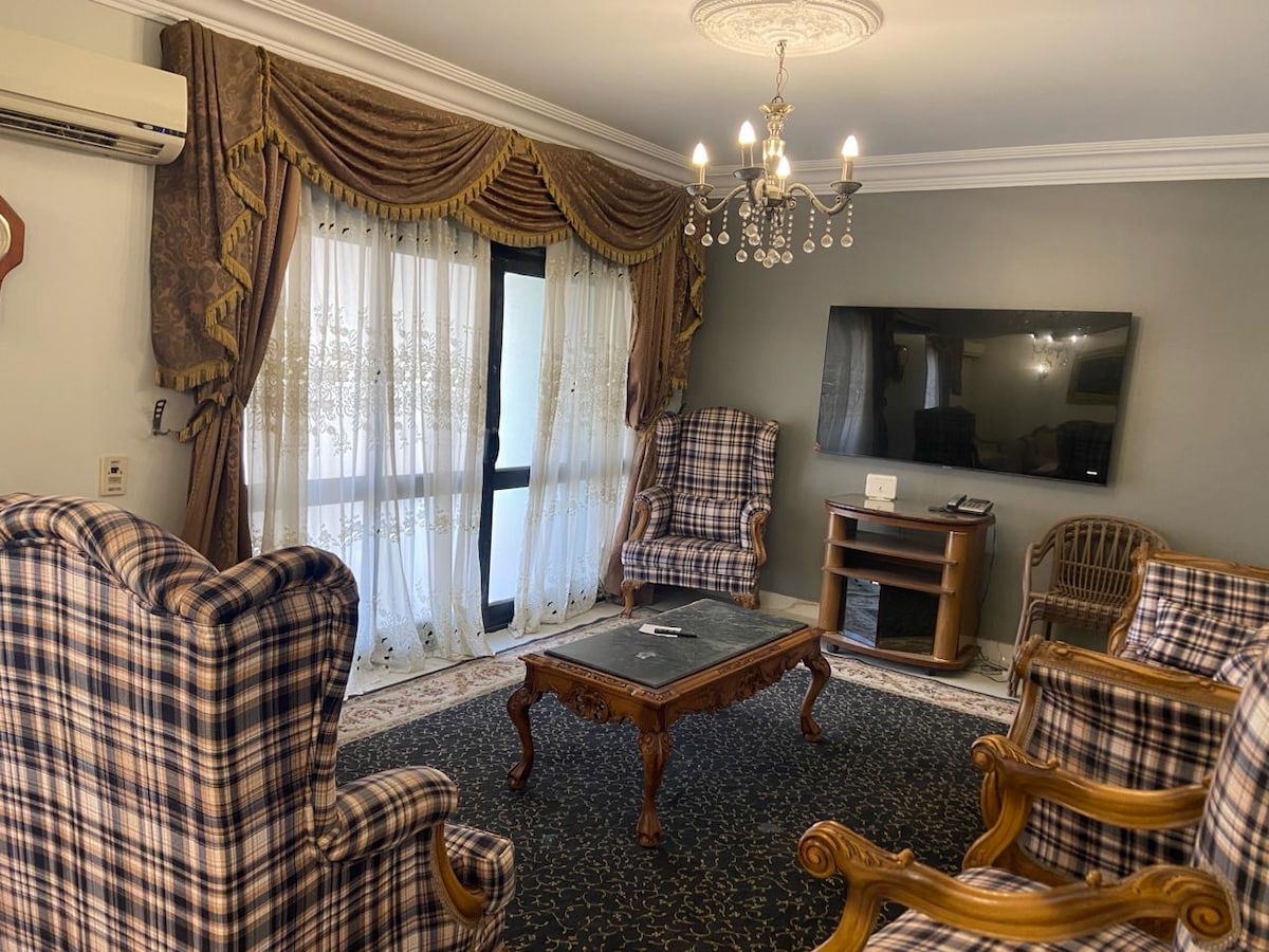 Welcome to lovely Charming Luxury apartment! My Apartment located in Nasr City Enjoy modern elegance 2 Bedroom , complete AC, and comfort. Stylish living area, fully equipped kitchen. You'll love the stylish décor and cozy atmosphere, which makes it the perfect home away from home. *High-speed internet. *10 mins to City Center Almaza & City Stars Mall *15 mins Cairo Festival Mall *15 mins to Airport Book now for a delightful stay!