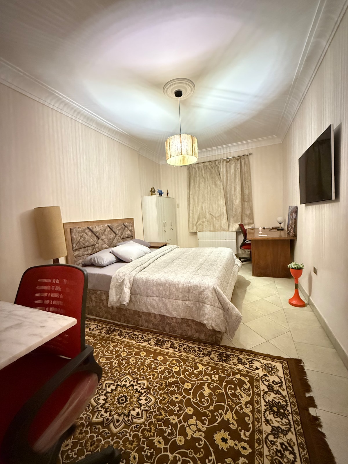 🏡 Stylish City Centre Apartment – Steps from the newest Cairo Metro! What you’ll love: ✔ Prime Location – Just a minutes away from Airport, cafes, and malls. ✔ Cozy & Well-Designed – Bedroom with a smart TV, and fast Wi-Fi. ✔ Comfy Bed – High-quality mattress and luxury linens for a restful sleep. ✔ Thoughtful Extras – Fresh towels, toiletries, and a welcome snack basket! Note: Please be noted that mixed group or couples is not allowed in the apartment