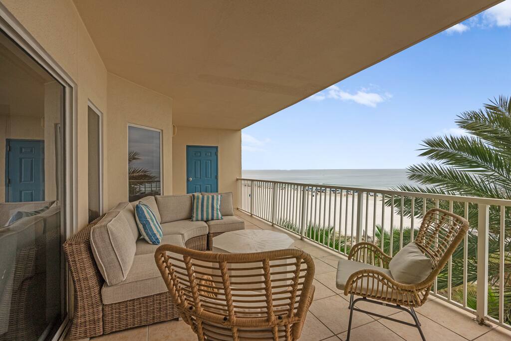 DON'T FIGHT THE CROWDS for space on the beach! Unwind in our comfortable 4th floor Beach Front "Slice of Paradise" with private beach. The balcony offers unobstructed, gorgeous views of the Gulf and the beautiful white sands of Perdido Key. Soak up the sun as you kick back on the balcony and count the dolphins while being lulled by the sound of the waves and the salt air breeze.