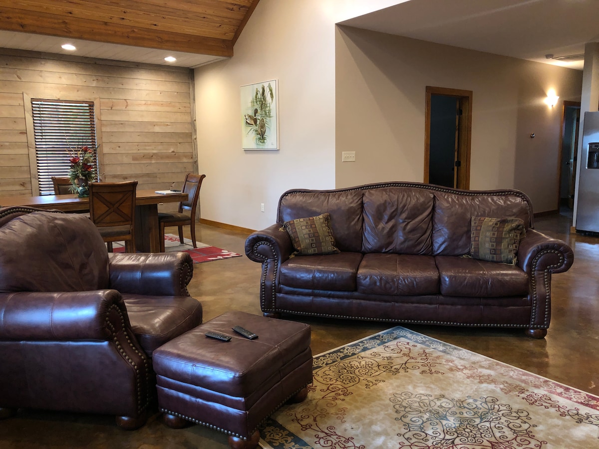 Each cabin is a beautiful, rustic space with vaulted ceilings and lots of natural light. Each has 2 bedroom and 1 and 1 /2 bathrooms and are fully outfitted to make your feel right at home.