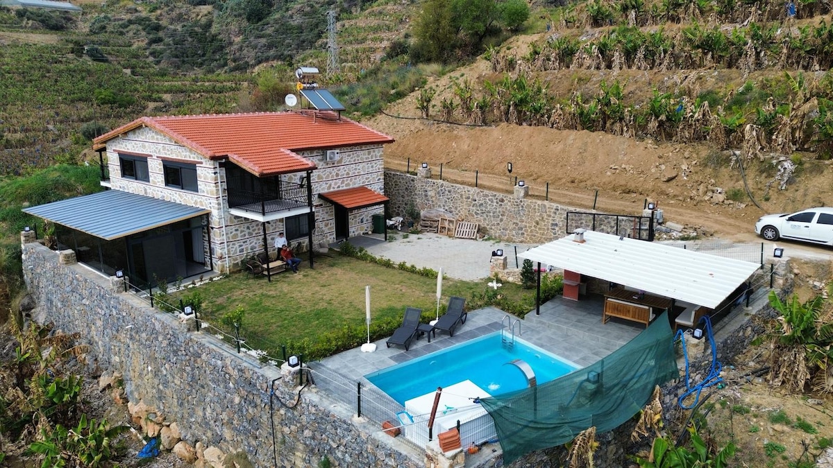 It is suitable for large families and groups of friends with accommodation for 8+2 people. The world-famous Cleopatra beach is 6 km away. In the garden of our villa, there are flowers and trees, a pool with a sea view and a barbecue.