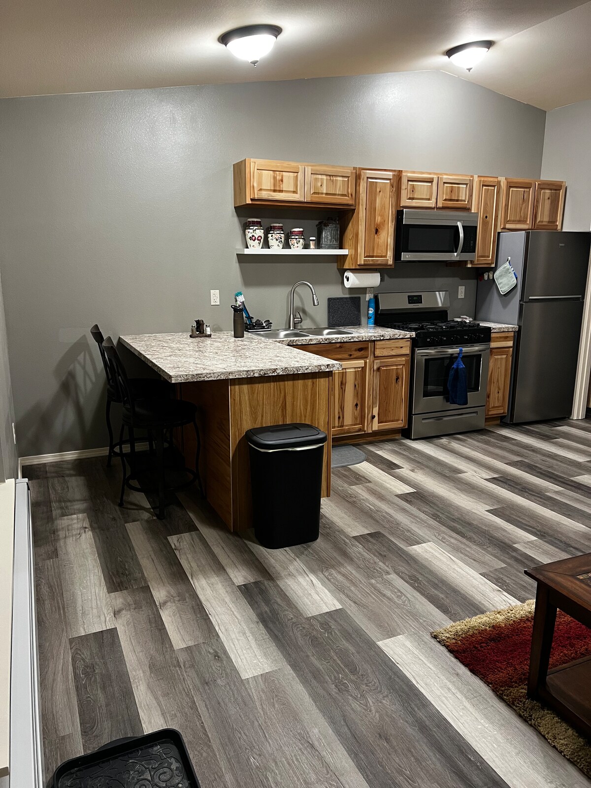 Newly constructed in 2024. Homer's most luxurious 1 bedroom suites. (Sleeps 4) Elegant lakeside lodging overlooking an authentic floatplane base. Featuring hickory cabinetry, fully equipped kitchen, full luxurious shower- washer/dryer in unit, high speed internet, 65" TV, radiant floor heating, large balcony, lakeside- perfect for relaxation in morning or evening. Close to a local brewery, restaurants, beaches, the Homer Spit, close to downtown. Absolutely the best lodging Homer has to offer.