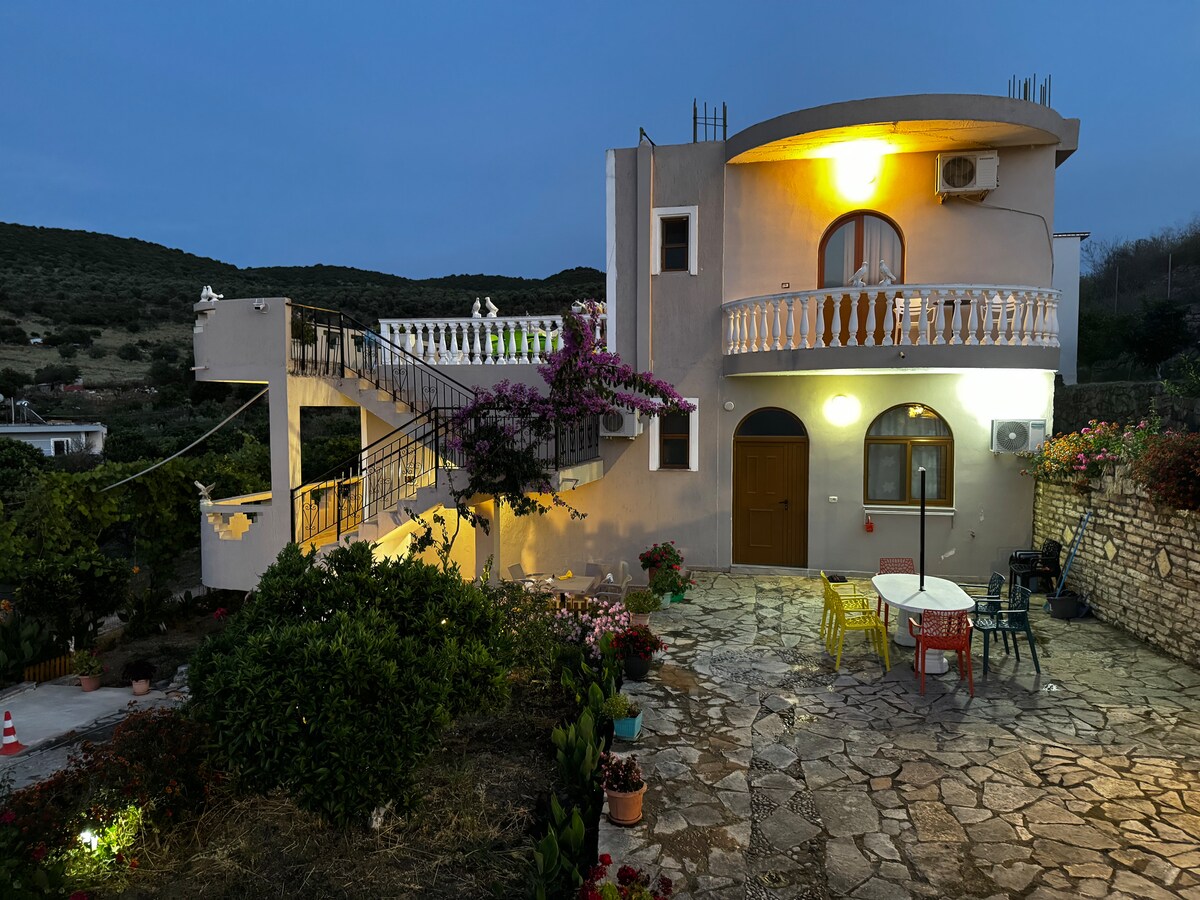 Welcome to our seaview villa in the heart of Sarande, ideal for large families, couples, or groups of friends. This spacious 5 bedroom home offers privacy, each bedroom featuring its own kitchen and bathroom for maximum comfort and independence. Rooftop terrace with uninterrupted Ionian Sea views, BBQ, and hanging chairs to relax under the stars. Located in a peaceful yet central area, the villa is just a short walk to the beach and promenade. Note There is no living room Parties not allowed