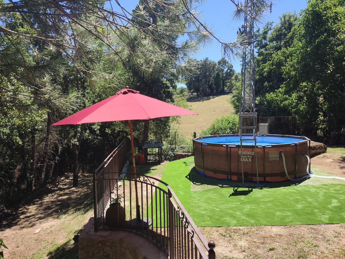 Independent house ideal for couples and small families. Parking and private garden, not shared, porch and barbecue It's not a room, it's a beautiful cottage. Open concept living room. Living area facing the wood-burning fireplace and smart TV, dining room with integrated kitchen, full bathroom, double sink and beautiful bedroom with XXL bed. Next to exit 375 of the A66. Ideal rest between north and south Check if you're coming with a pet. The pool is 100 meters away and is communal