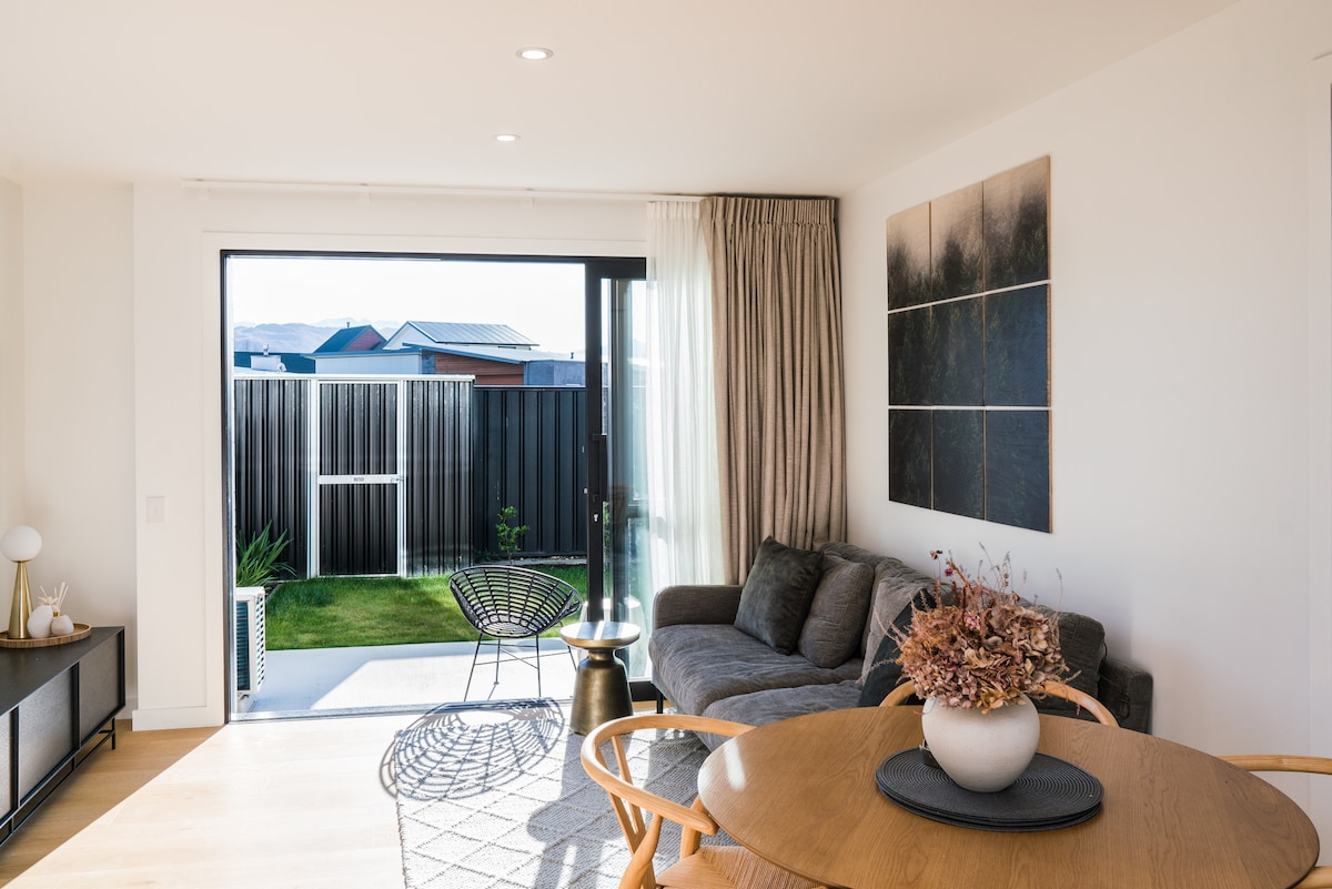 This townhouse is situated a stone throw from the Clutha River, 20-minute stroll to the famous Hook & a 5 minutes’ drive to Wanaka lakefront. Just pack your bags, this brand-new well-equipped townhouse & complex has everything you need, conveniently located across the carpark is the renowned Pembroke Patisserie, corner store, fish & chip shop, restaurant & tavern. Whether your here for an outdoor adventure, wining & dining or a weeks escape - this modern apartment suits all vacation needs!