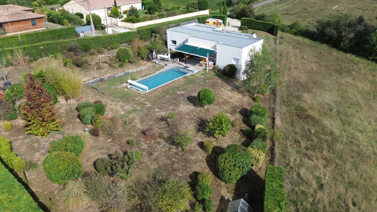 In the heart of the Occitanie region, in the historic city of Albi, in a residential area, enjoy a ***** gîte with 3 assets - 120 m² house, quiet, fully equipped for comfort and leisure - aquatic and sports area (shared): heated swimming pool (May-Oct), pool house with shower, toilet, mini gym with exercise bike and rowing machine - large wooded plot with enclosed parking, 2-seat carport, playground for table tennis, badminton or volleyball, and petanque area