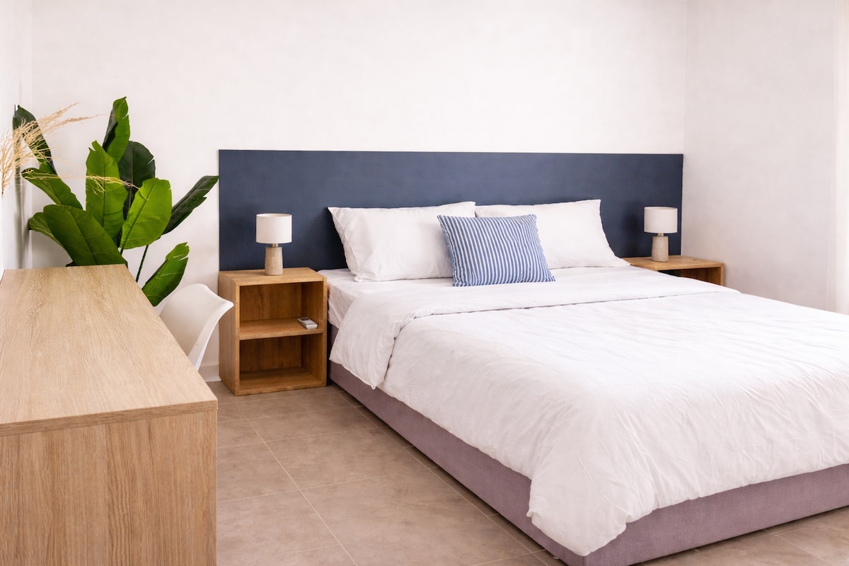 Escape to our serene modern villa oasis, where a private pool and lush garden await your arrival. Vast living spaces invite relaxation, while deluxe amenities and a fully equipped kitchen cater to your every need. Enjoy optimal lighting and ventilation as neutral tones, natural elements, and ample windows create an atmosphere of tranquility, perfect for rejuvenation and relaxation during your stay.