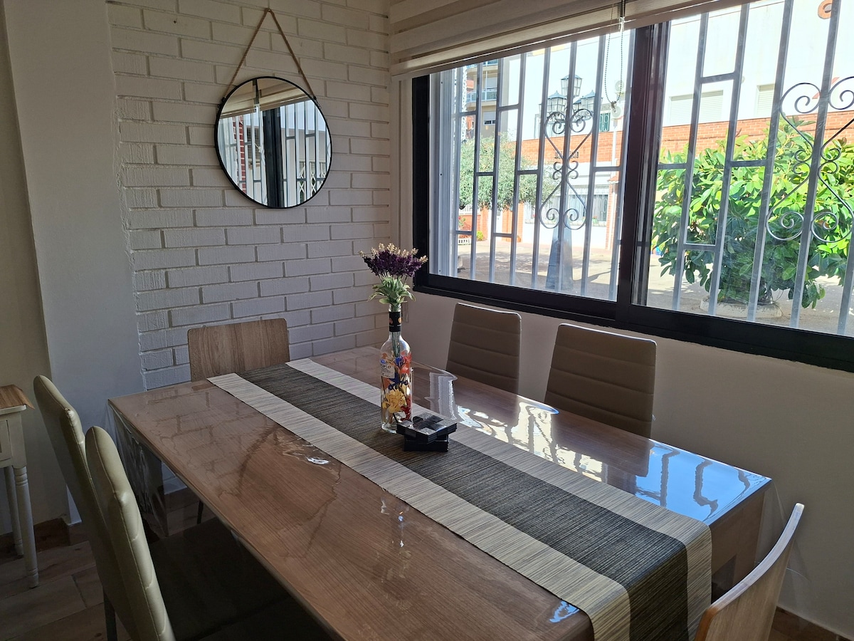 Beautiful 3-story townhouse in a development with a pool, bright and cozy. Very quiet area, with great views and a parking space. WIFI. Ideal for couples or families: kitchen-dining room, covered terrace, 3 bedrooms, 2 bathrooms, 65m2 sun terrace and outdoor furniture and artificial grass. Ceiling fans, mosquito nets, fridge, oven, dishwasher, toaster, coffee maker, washing machine, TV, music player, hair dryer, iron. Sheets and towels available. Crib, high chair