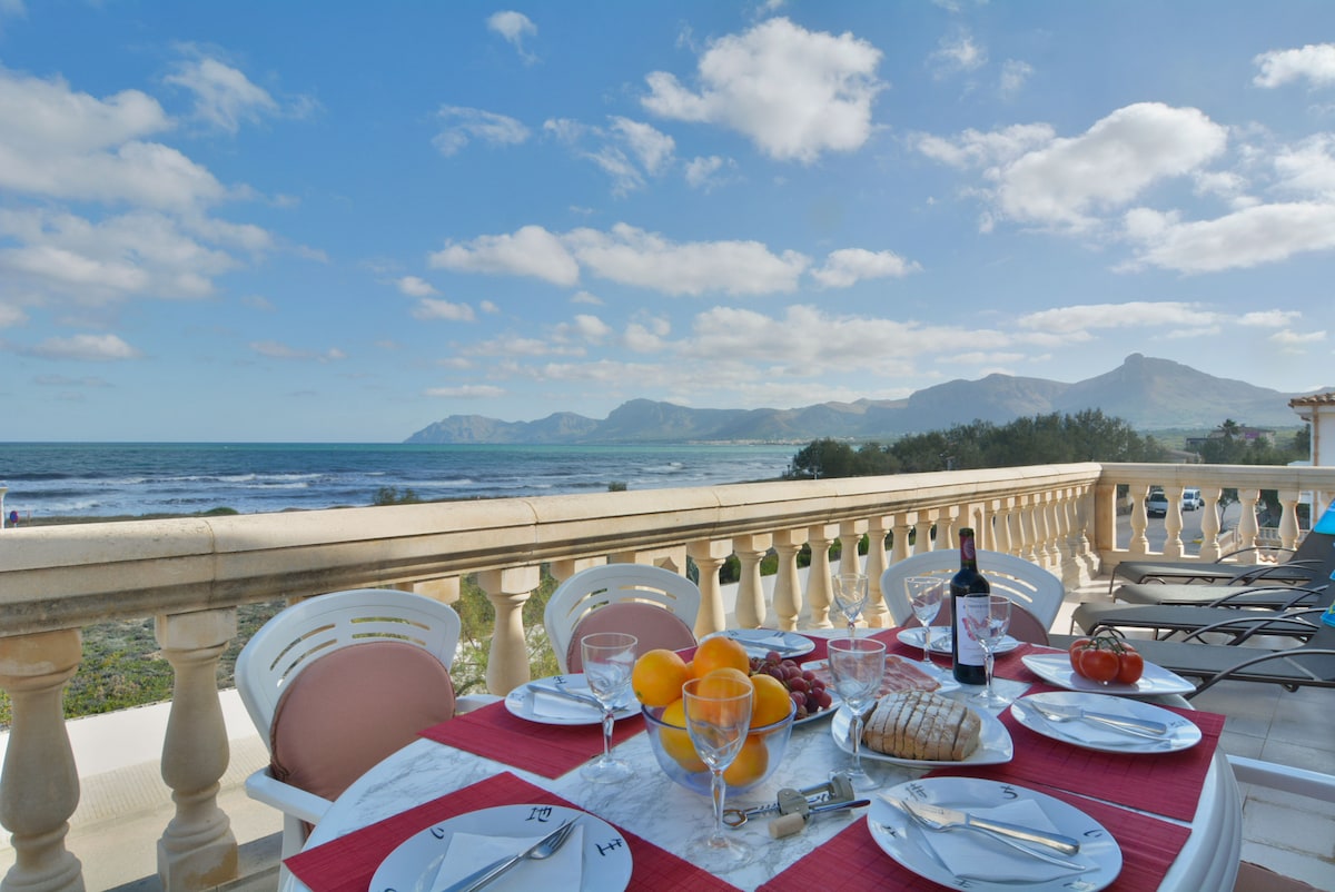 This gorgeous beach house is located in the 1st sea line of the charming Puerto de Pollensa, directly on the Pine Walk. The beach house is only 1 step away from the fine sandy beach. On the enchanting terrace with a beautifully flowering bougainvillea you can enjoy not only the dreamlike sea view but also the view of the unique Tramuntana mountains, the boats and the sandy beach.