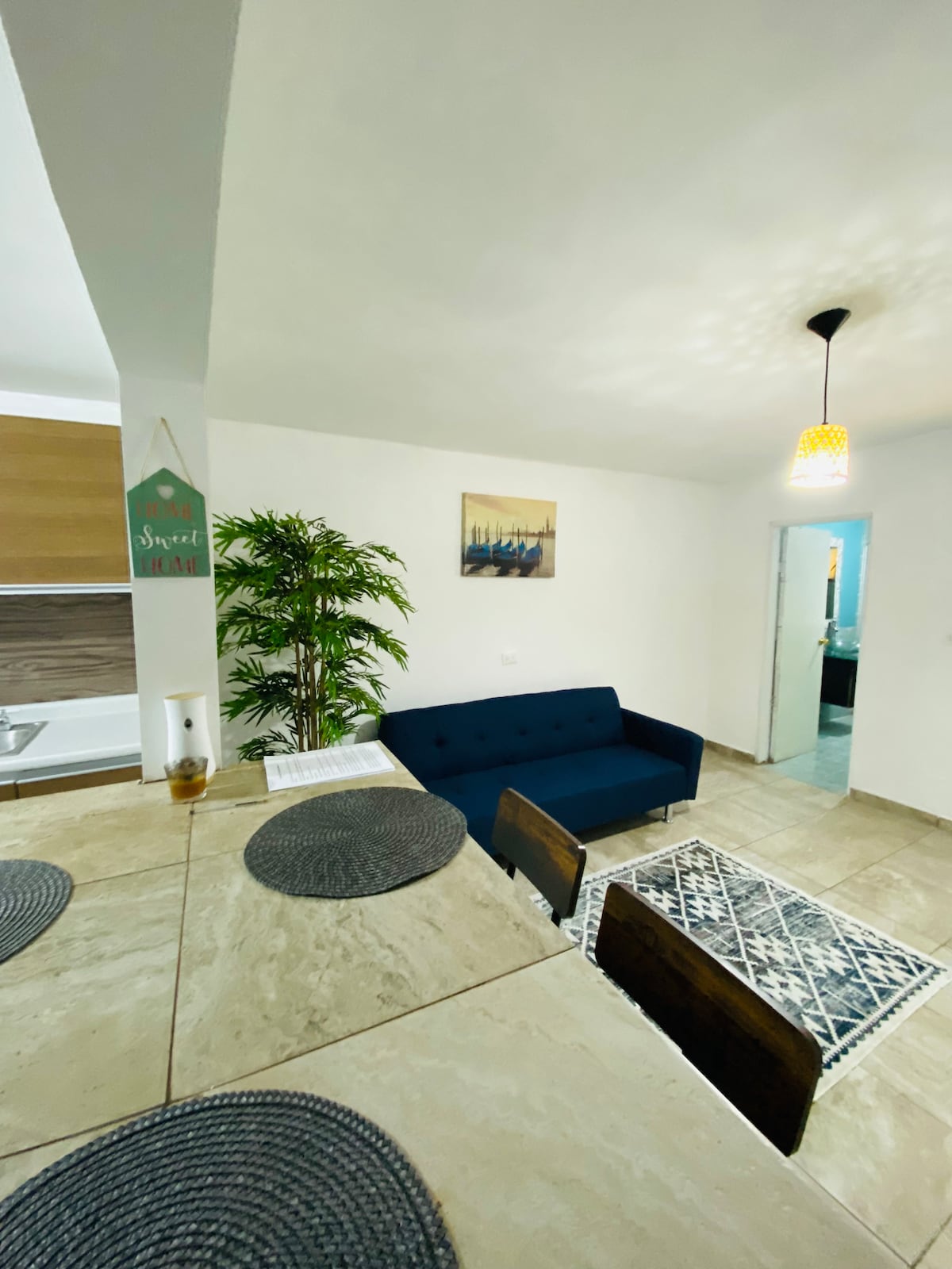 Nice apartment for two people. High-speed WiFi, Minisplit. Full kitchen with dishes, cutlery and cooking utensils, refrigerator, microwave, blender, coffee maker. Toilet paper, paper towels, dish soap, Smart TV. Bedding, towels, soap and shampoo.