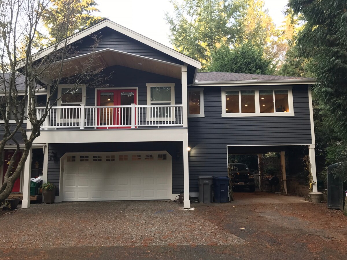 Come enjoy our cozy Pacific Northwest guest suite. A two bedroom, one bath space with a private entrance. Get some fresh air on the small patio overlooking a large backyard with beautiful natural surroundings. Indulge yourself in our large jacuzzi tub and toilet bidet! Or get to work using the desk space and high-speed Wi-Fi. And of course, keep energized with the coffee and snacks we provide for you. *Access to the space does require going down a rocky pathway. It is not ADA friendly.