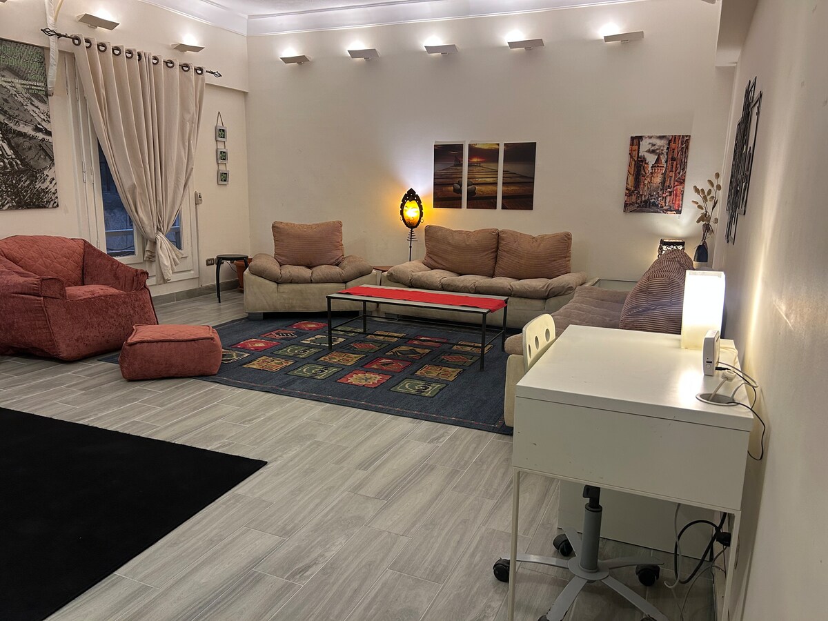 Enjoy the perfect location in Alexandria! This spacious apartment is located in the secure Green Towers Compound, right next door to the famous Green Plaza Mall—a huge open-air destination with cinemas, diverse restaurants, and endless shopping. With high-speed WiFi, a Smart TV, and a huge Fathallah Hypermarket just steps away inside the compound, you have absolutely everything you need for a comfortable short or long-term stay.
