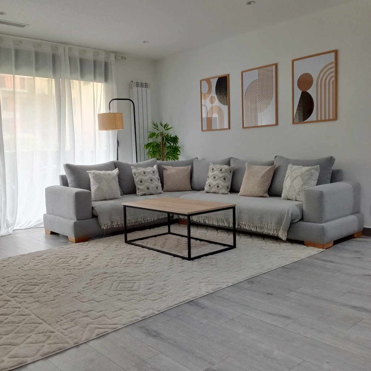 F3 de 66 m2 tout confort, calme et lumineux, entièrement rénové avec parquet bois. Décoration atypique et artisanale. Composé de : • Séjour avec cuisine équipée • Salon (canapé d’angle avec télé) • 2 chambres (lit double et à étages, lit gigogne et lit parapluie) • 2 climatisations • WIFI, eau H24 et linge de maison Dans une résidence moderne «Ryad city III» avec entrée sécurisée (badge, caméra et gardien), 5ème étage avec ascenseur, mosquée au bas de la résidence
