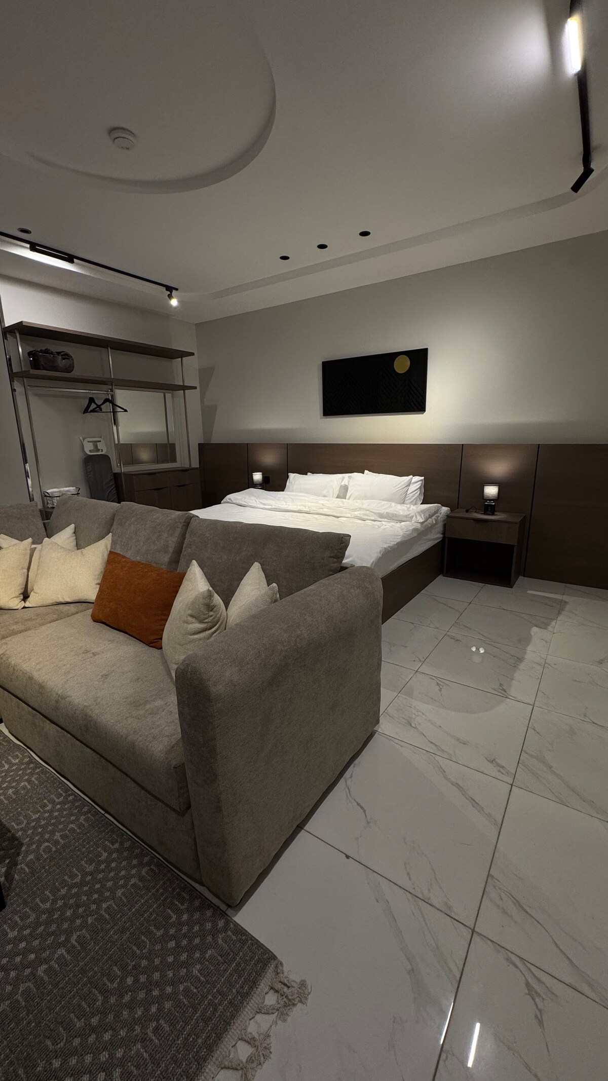 This stylish place to stay is perfect for family trips Ground floor. Independent entrance. Small outdoor patio with a beautiful sitting area, calm colors, modern and elegant decoration, beautiful lighting. Independent master bedroom suite consisting of bedroom, living room and coffee corner In addition, there is a section that serves when there are children and a maid There is a large living room separate from the sleeping area where the guest can receive visitors The place is ready for daily and weekly rent Attention to the smallest details such as (placing a mattress protector and a pillow protector and changing it constantly) There is an automatic washing machine There are services nearby.