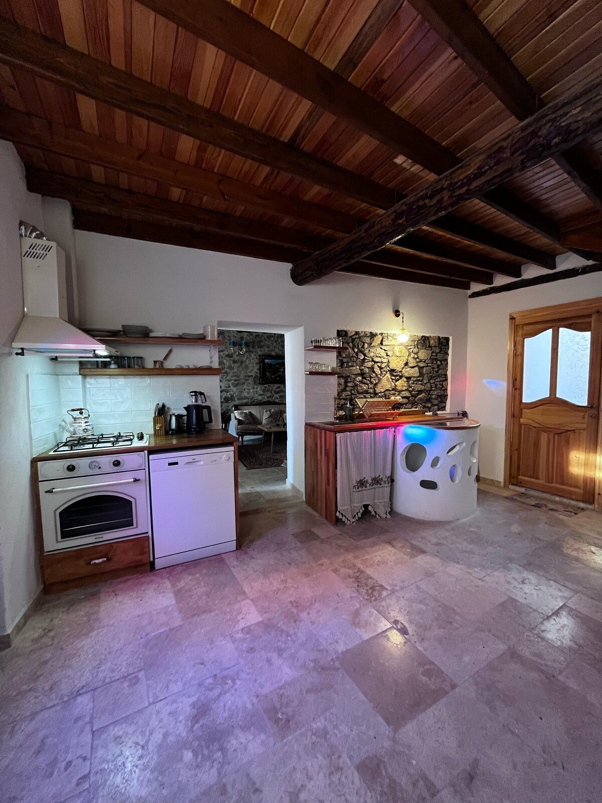 Our stone house in the center of Ayvalık consists of two separate sections and has all the features of Greek architecture. Our house, which can easily accommodate two separate families or large groups, has been prepared to provide our guests with the comfort of a holiday. There are two separate kitchens on the 1st and 3rd floors where you can set up pleasant tables with your loved ones. The walking distance to the center of Ayvalık is 5 minutes and you can reach the beaches and Cunda Island in 15 minutes by car. We can speak Russian, German and English.
