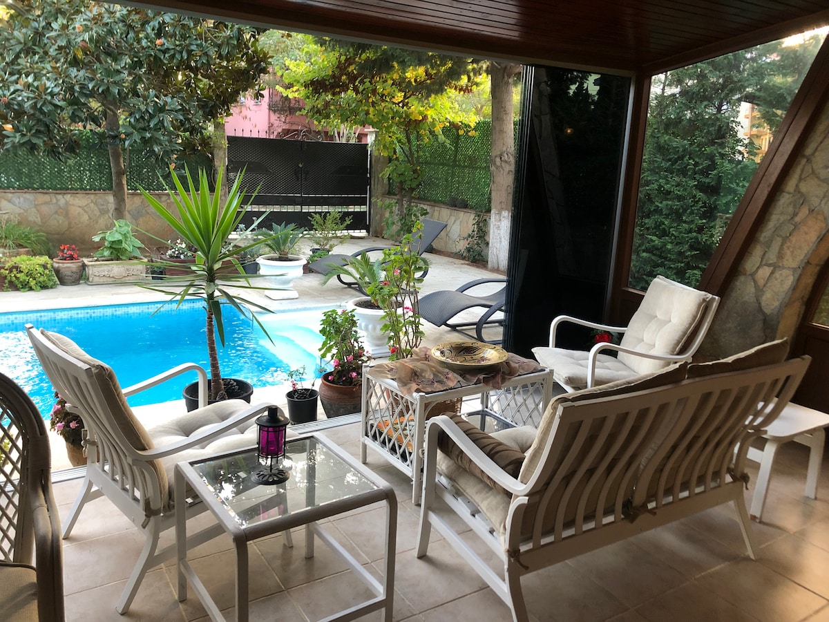 Have a pleasant holiday in our spacious and cosy home with panoramic sea view at Heybeli Island! Heybeli Ada'da panoramik manzarali, ferah ve sicak bir dekorasyona sahip evimizde keyifli bir tatil gecirebilirsiniz!
