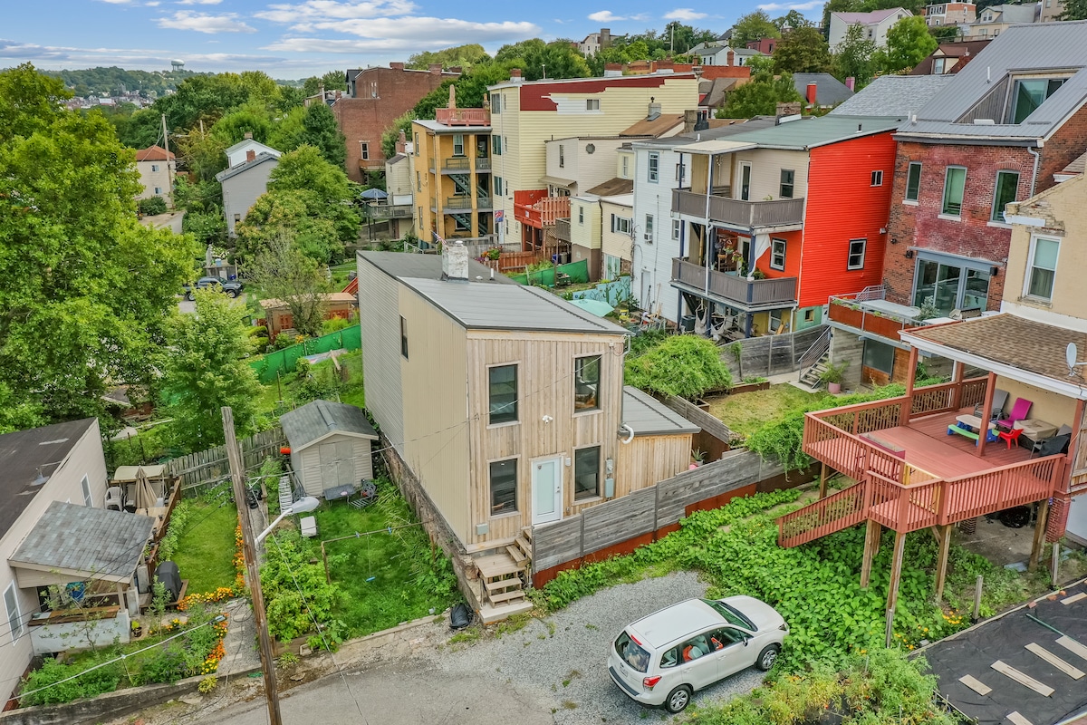 Tucked away in this quirky pittsburgh hood, find this one bedroom guest house with amazing view of the strip, northside and downtown. The Polish hill community is a cloistered, friendly, mix of punk rock, artists and families. It feels like a little village in the middle of the city. The cabin has a king size memory foam mattress, full kitchen, washer dryer, nespresso coffee maker and small patio. Perfect for a couple to explore Pittsburgh from a very walkable central location