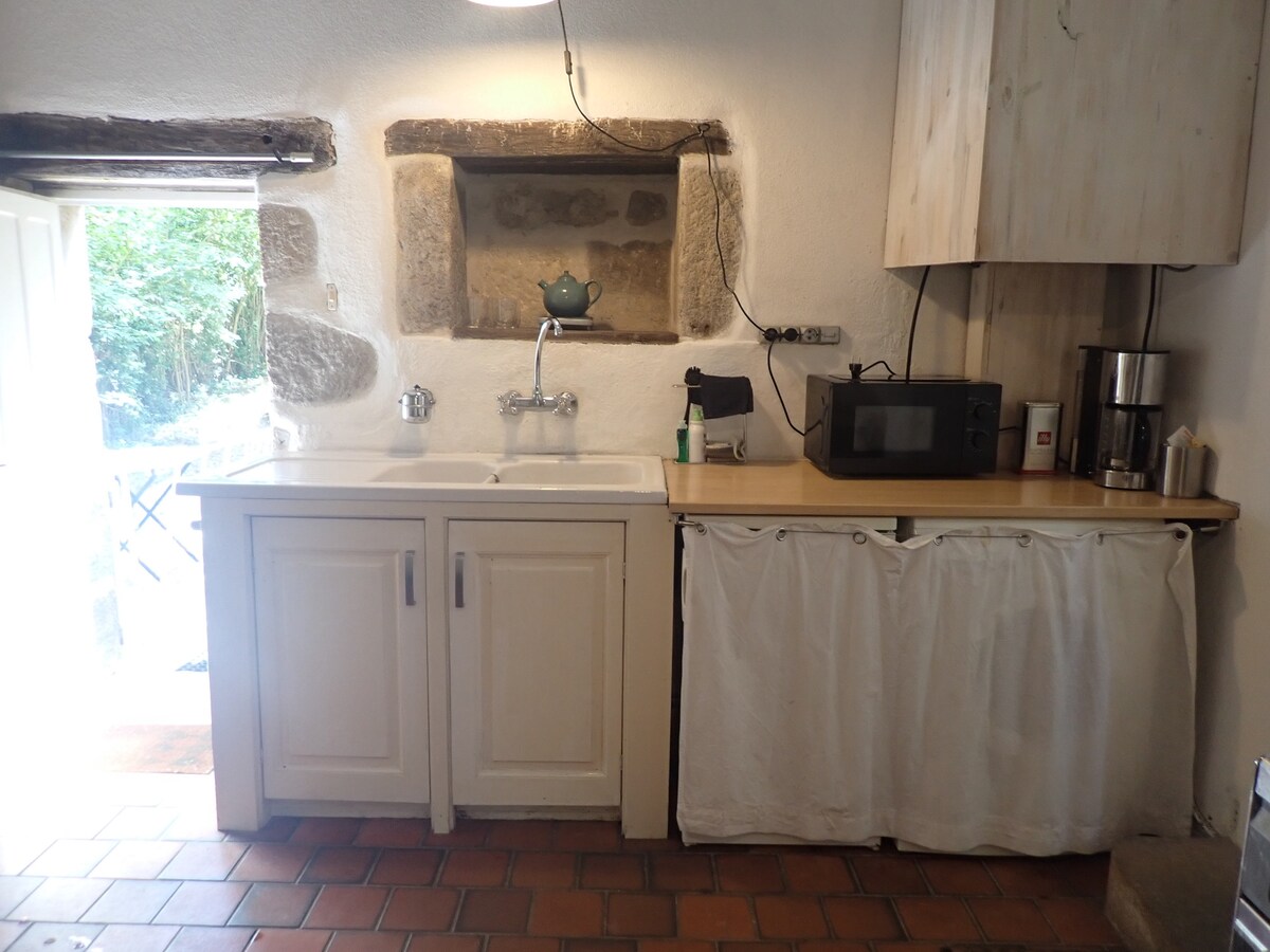 Need to go green? Come and recharge your batteries away from noise, lights and pollution in this 1812 retreat where greenery, old stones, old wood await you, but with all modern comforts. Wifi permanently cut off (except in emergencies) for less frequent disturbances, no TV but video projectors for movie buffs. Large kitchen, living room and shared bathroom. Rentable by the room (3 bedrooms and 3 different prices) or as a self-catering cottage (I live in another building).