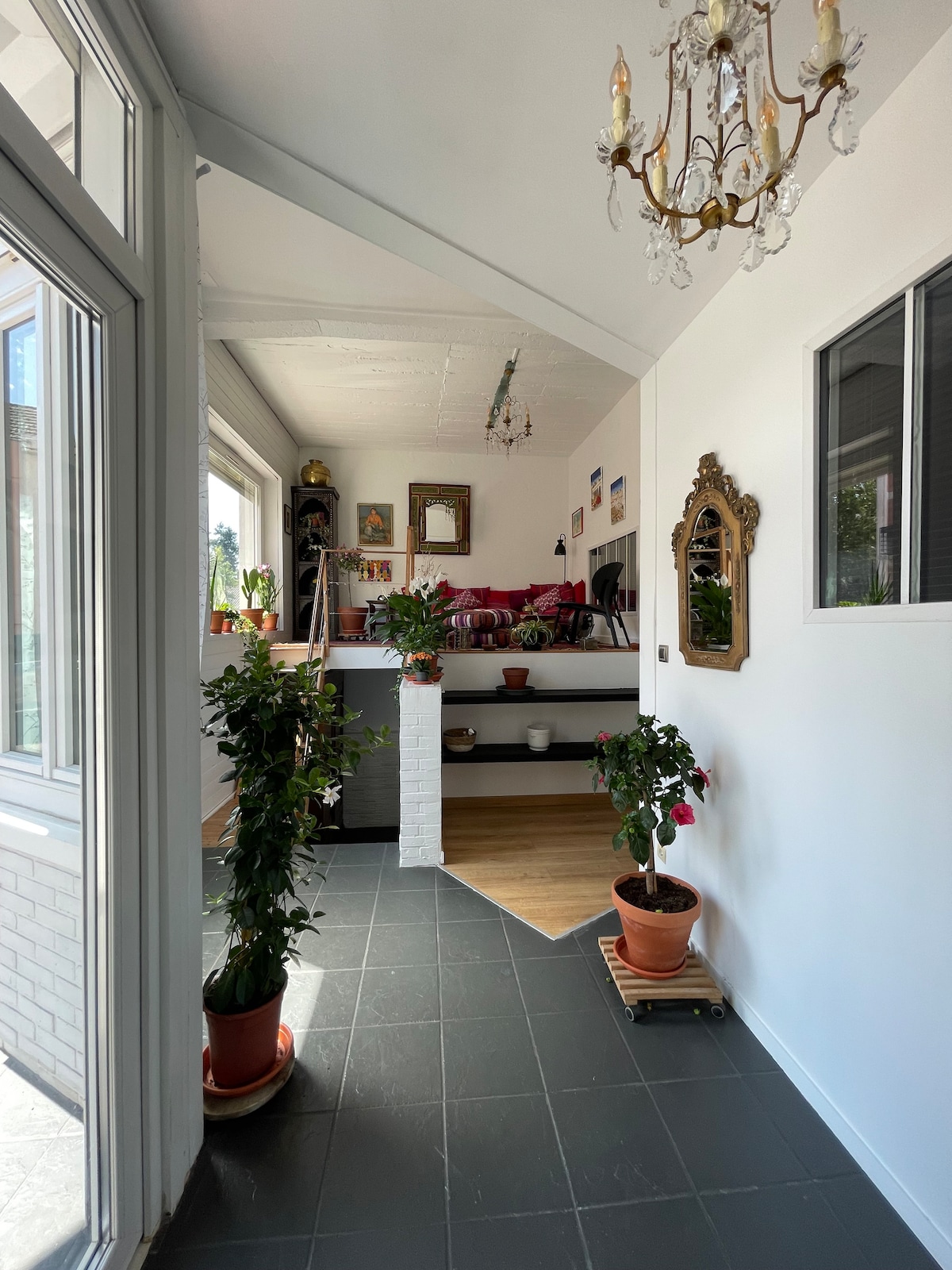 Welcome to our unusual loft in Vichy, ideal for seasonal stays. Very spacious (220 m2) and bright, close to parks and shops. Loft with fully-equipped kitchen, relaxing lounge, home office, one air-conditioned bedroom (Queensize bed) and three quiet sleeping areas, two spacious bathrooms with 4 showers, whirlpool bath and separate sauna. Perfect for couples, families or groups (1 to 8 people). No noisy events to preserve the tranquillity of the neighbourhood.