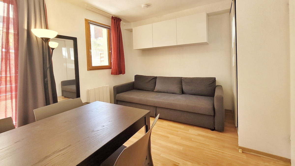 Apartment located at the top of the resort of the slopes accessible ski to the feet. Station that also offers many activities in summer: bike descent, evtt, ice rink, cinema, hiking, water area, restaurants, bars, nightclub ... Ideal for families, but also for athletes and hikers. A large kitchen dining room with sofa bed 2 places and a bedroom with 3 beds plus a bunk bed in the entrance. The apartment is on the 1st floor and has a terrace.