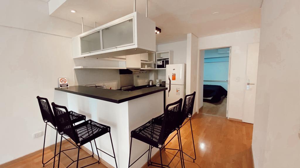 Enjoy an amazing one-bedroom apartment fully equipped with spectacular amenities. On a third floor with elevator. The apartment is located in the Palermo Soho area, one of the more affluent, trendy and safe neighborhoods in Buenos Aires. Housed in a modern style building, well-maintained and secured, this 600 Sq Ft (56 m2) apartment has just been decorated using modern style furniture to provide maximum comfort.