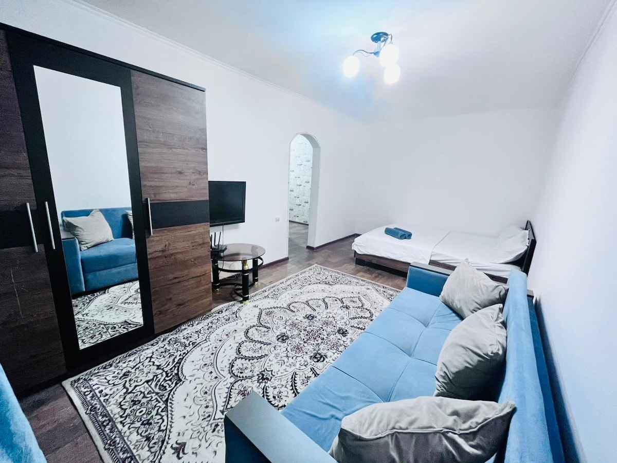 This place will give you vivid memories with its location - 15 minutes walk from Mega Center. Nearby are the Bolshaya Almatinka River with mountain views, the Park of the First President, various cafes, shops, bazaar, food court, bus stop 1-2 minutes. A lot of interesting and necessary in a walking distance. Check-in and check-out are flexible without strict restrictions, but by prior arrangement. 2-bed + sofa (1 seat)