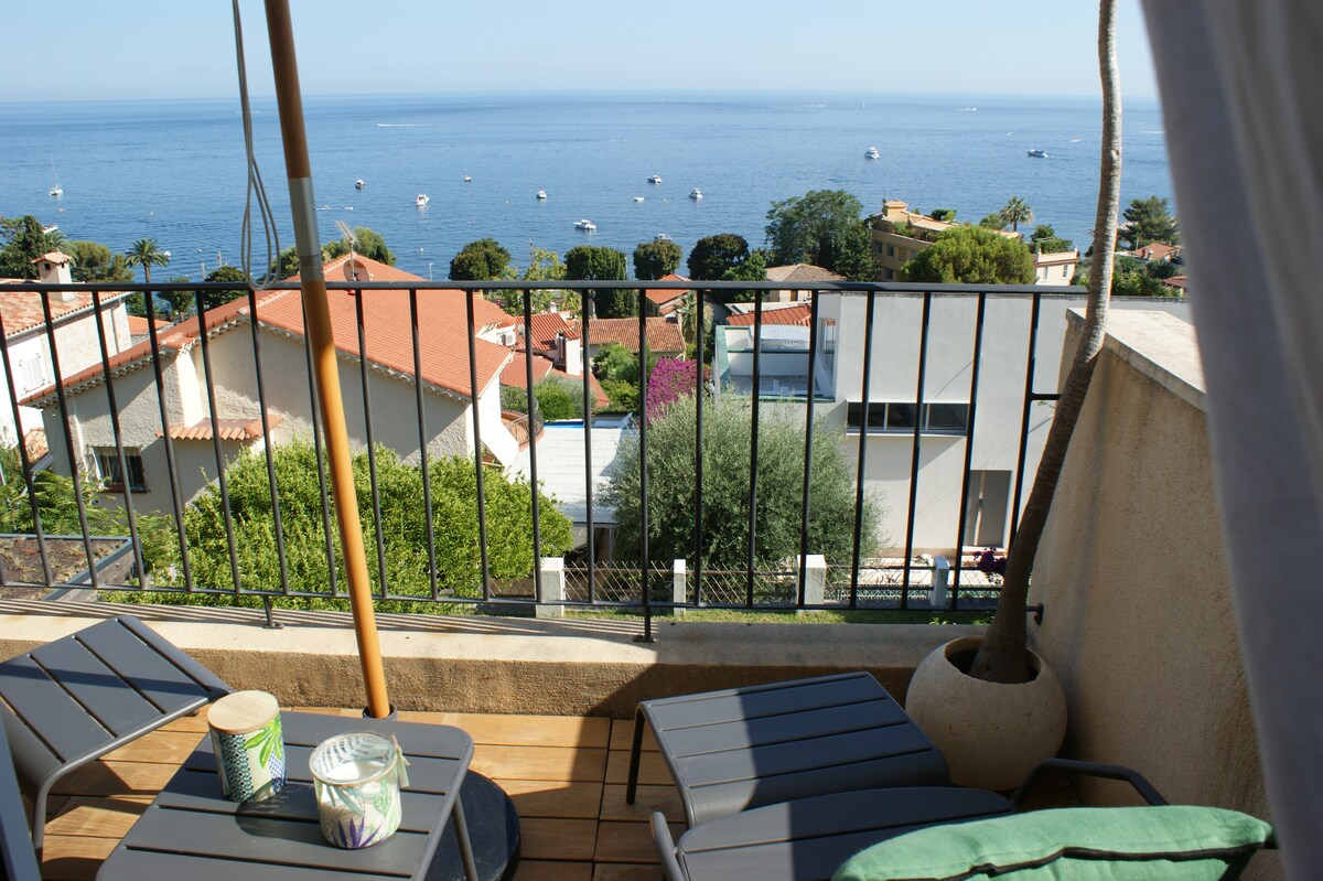 Isidore's house, located between Nice (15 km) and Monaco (8 km) is part of our house with a separate entrance that is totally independent. The air-conditioned duplex includes a fully equipped kitchenette on the ground floor. In front of the entrance, a small table allows you to eat in the shade of the wisteria. Upstairs, one bedroom and one bathroom are accessed by a small staircase. A bay window in the bedroom gives access to a terrace with a beautiful sea view of the bay of Eze.