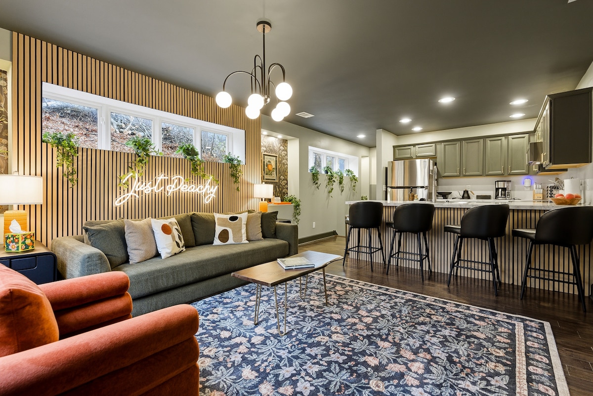 Your private, renovated Sandy Springs retreat—perfect for couples, families, remote work, and travel nurses. Safe, quiet, design-forward, with quick access to the greater Atlanta metro. ☑ Private entrance ☑ King Nectar bed ☑ Queen trifold floor mattress ☑ Queen sofa bed (great for kids) ☑ 328 Mbps WiFi + desk ☑ Full kitchen ☑ Washer + dryer ☑ Pack ’n play + toys ☑ EV charger ☑ Modern, calming design “Pictures don’t do it justice!” 7 mins → DT Dunwoody 15 mins → Alpharetta 25 mins → DT Atlanta