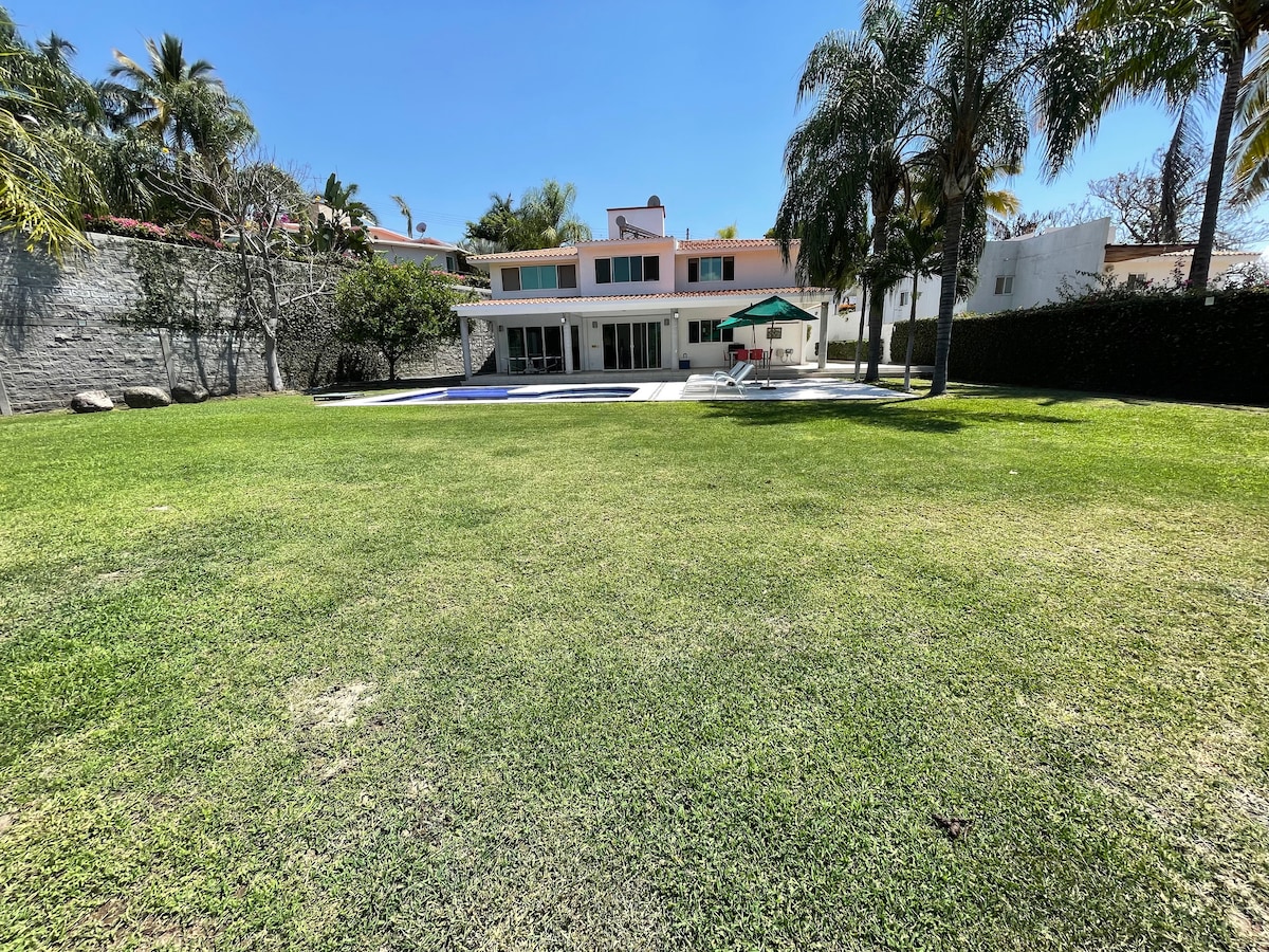 Large house with a swimming pool and private garden. Maximum occupancy of 10 guests but the price is determined according to the number of people staying. The pool has solar cells. Inside the golf club for those who like this sport. Ideal for families traveling with children and wanting to spend a weekend relaxing. It has nearby restaurants and self-service. Close to event halls, zoos, a water park, magical villages and Tequesquitengo Lagoon
