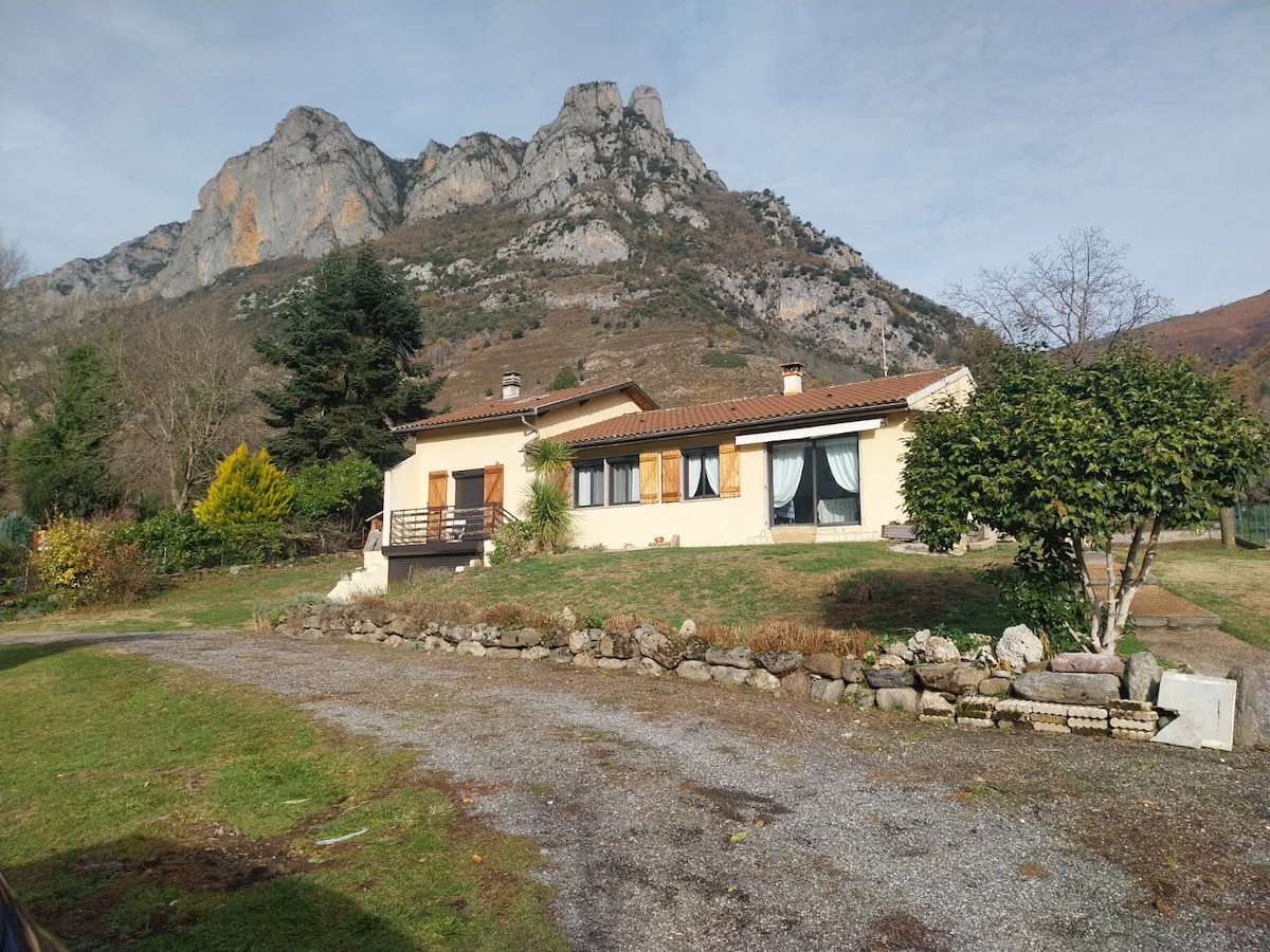 130 m² house/ unfenced garden/hamlet 800 m altitude 15 min from St Girons + shops. Unobstructed view. INTERNET BOX + WIFI Ground floor: Living room with TV + sofa bed Open kitchen (microwave, oven, induction hob, coffee machine, fridge, dishwasher) / Laundry room / Bathroom shower + toilet / Floor 1: 4 bedrooms, one with a Rochelle bed / Floor 2: Attic not accessible in winter. For nature lovers. Pets are allowed. Sheets are not provided. Fireplace out of order