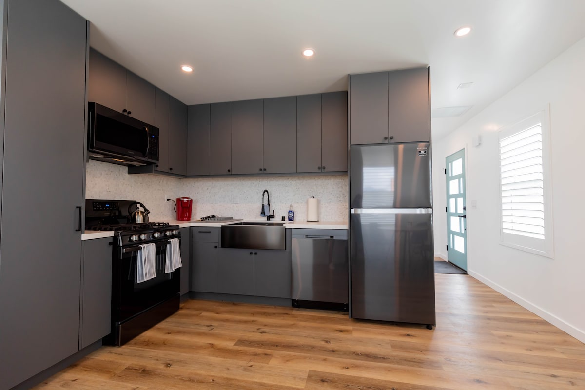 Private entrance, charming, and brand-new construction home complete with your own full kitchen, bedroom, large bathroom with bath & shower. We're in the safe, serene, great-for-hiking area of Altadena. We are a 6-minute drive from the Rose Bowl and JPL is within walking distance. 10 minutes from Old Town Pasadena, 25 minutes from Down Town LA. We have street parking, high-speed WiFi, Cable TV, Smart TV, laundry area, and a lovely outdoor space. Perfect for short /long term. Enjoy Your Stay!!!