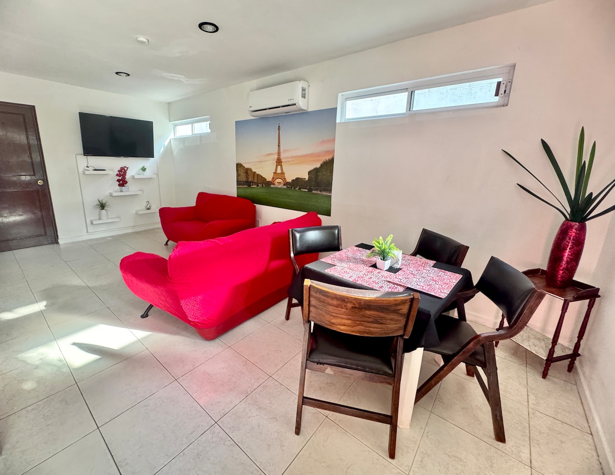 Independent house with a good location, two blocks from the main avenue that takes you by car to downtown Cd. Madero in 5 minutes, Miramar Beach in 15 minutes, Tampico Historic Center in 10 minutes, Laguna del Carpintero in 7 minutes. It has a covered garage, a bedroom with a full bathroom, a double bed, a mini-split, a work area, internet, and a 43" Smart TV. Dining room with ceiling fans and a sofa bed with an option for two additional guests, kitchen and washing machine.