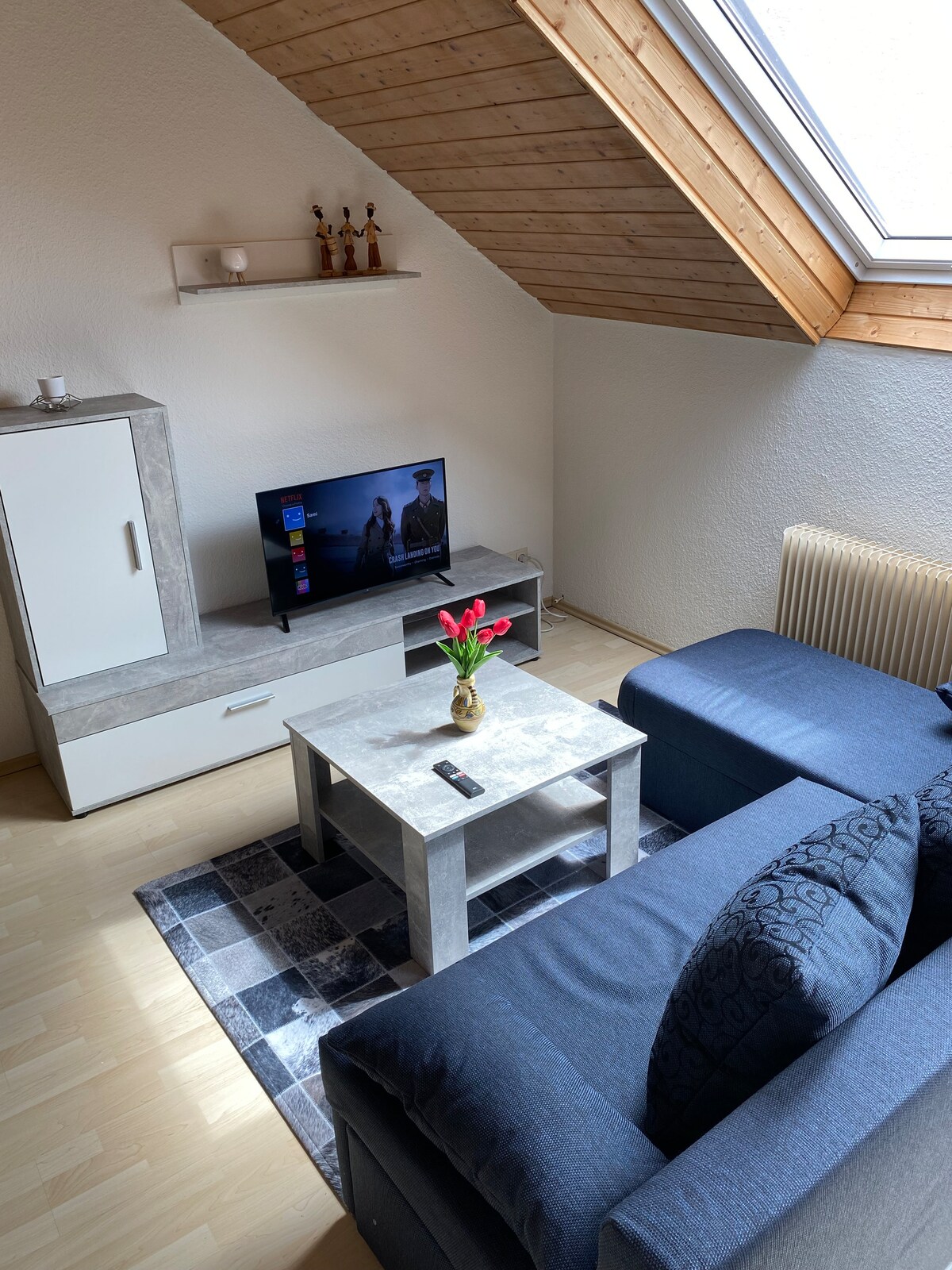 Welcome to this beautiful penthouse that offers you a great short or long-term stay in the immediate vicinity of Stuttgart Airport and the trade fair: → 4 king-size double beds → 2 bathrooms → 3 bedrooms for up to 8 guests → 75-inch smart TV & NETFLIX as well as Amazon Prime → Bluetooth cinema sound system → Fast Internet with iPad → Fitness equipment & table tennis → NESPRESSO coffee → Kitchenette → Washer / dryer → Free parking spaces → 2-minute walk to the mall