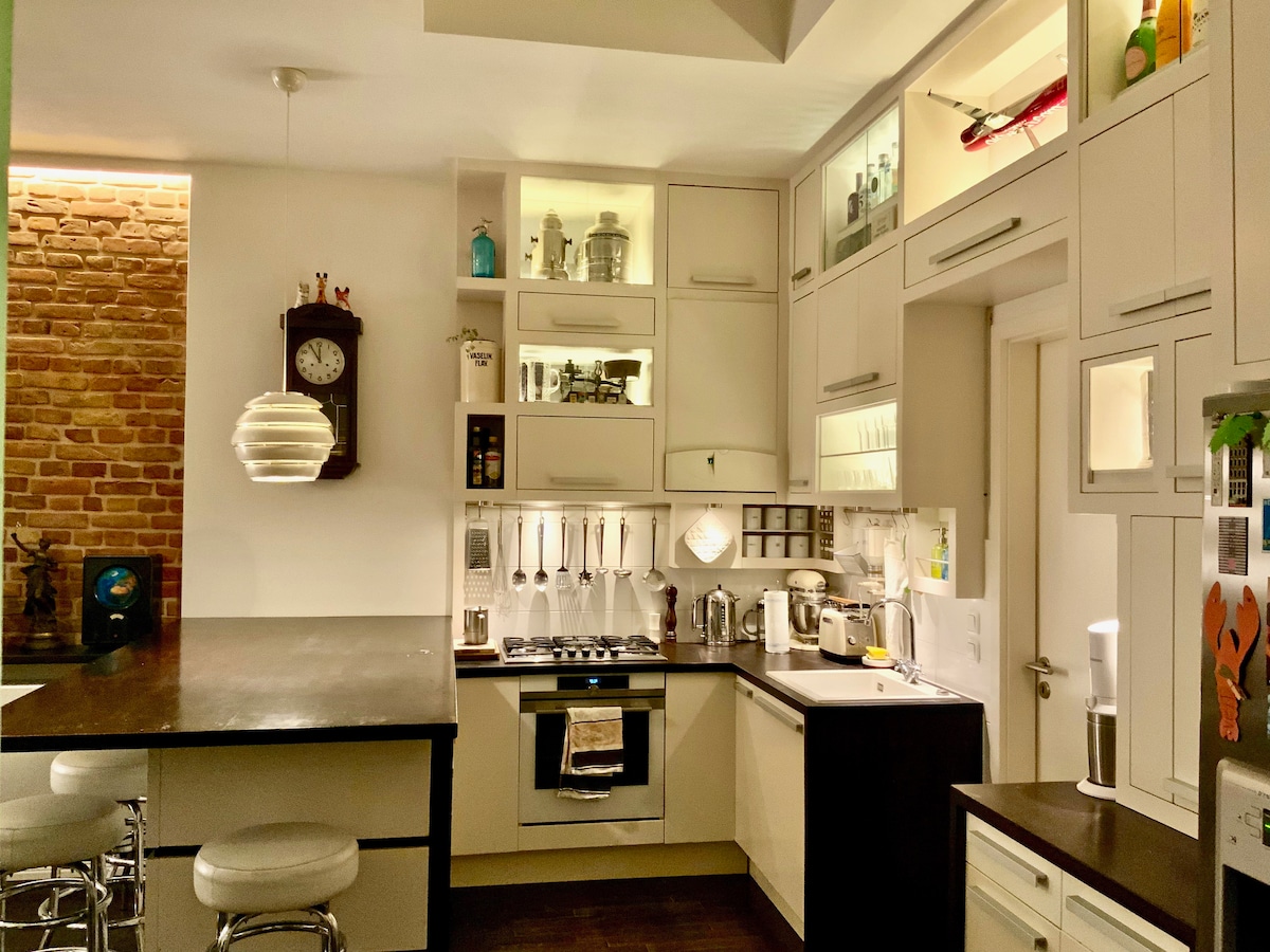 Modern 3 bedroom, 2 bathroom penthouse in the city centre with everything you would need for a comfortable stay. Free parking, Fast wifi, cable TV, arcarde machine (for the kids), elevator and a gorgeous roof terrace overlooking the city! ALL TAXES INCLUDED! ** Legally registered holiday apartment in Berlin **