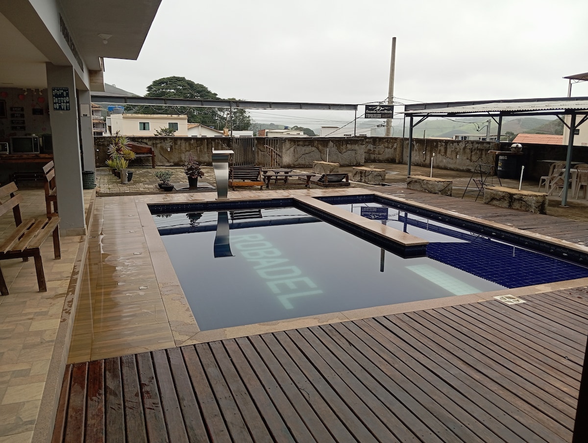 Relax with the whole family at this peaceful place to stay, in the heart of the city of Alto Caparaó, in the Serra Monte neighborhood. The internal structure has a double box bed plus a sofa bed or double mattress, a luxurious bathroom with gas heating, and a full kitchen. The outdoor area has a bathroom with a shower, a shower, a pergola with a hammock, a 400m2 outdoor area, an exclusive walled enclosure, a parking space, and we accept pets. We do not allow sound to be turned on because we prioritize the sound of nature and birds… No parties allowed…