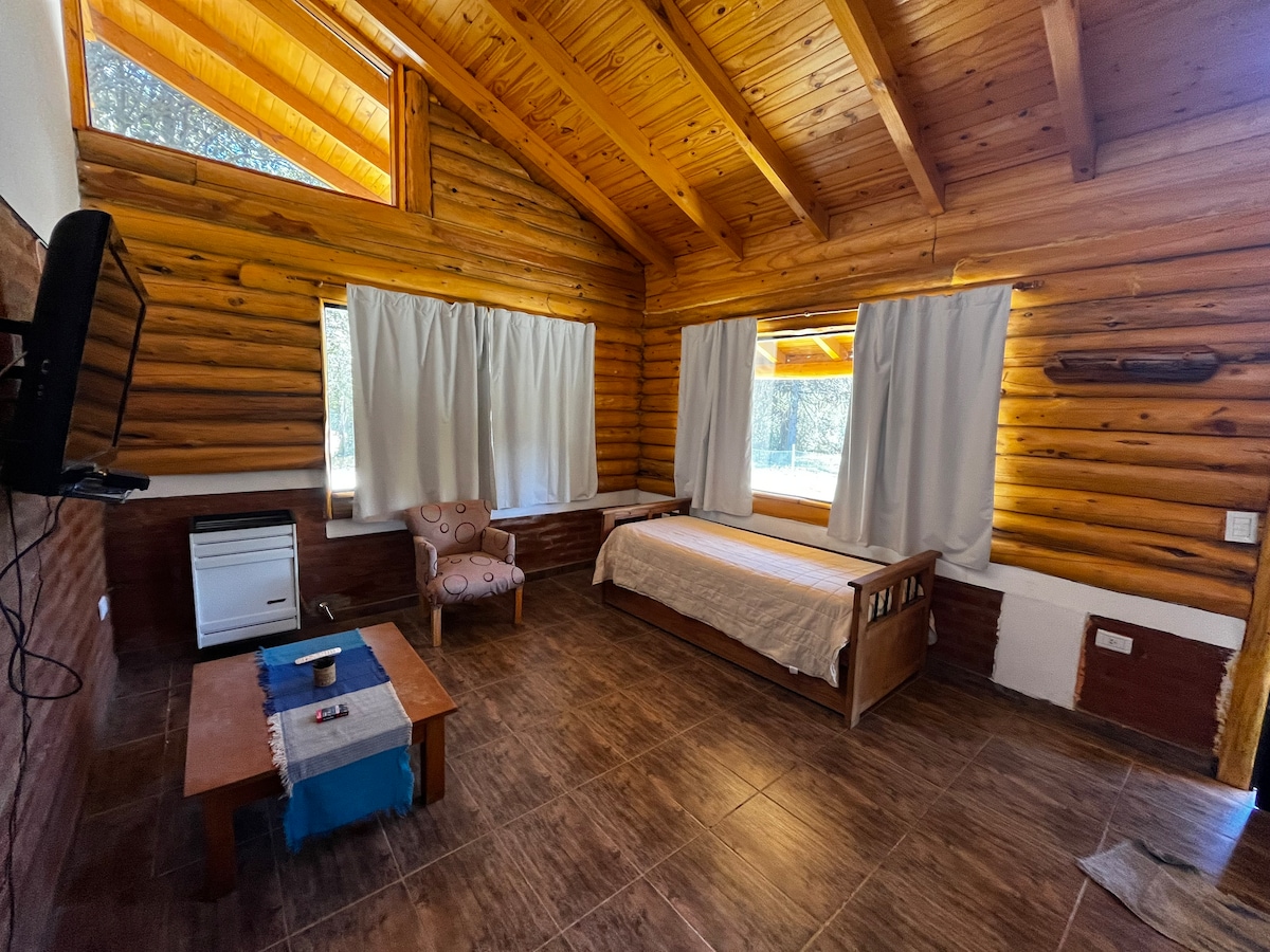 It is a single room with all the comforts to rest and enjoy an excellent stay. It has a mini dining room overlooking Lake Aluminé, full kitchen (Refrigerator, microwave, toaster, tableware, cutlery, pots, etc.) and private bathroom. On the balcony there is a separate grill and terrace table with the best view of Lake Aluminé. We have parking (not covered) in the interior of the property.