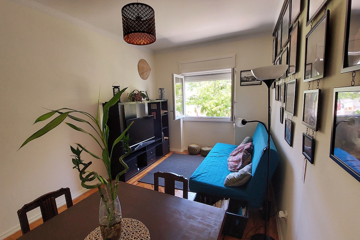 Welcome to my home! I am 37 years old and live alone, and the space is simple but comfortable. I offer a cozy bedroom, bathroom, equipped kitchen and living room with good internet. I rent my house when I go on vacation, so the apartment will be available! Located in a central area, I am surrounded by cafes and supermarkets, and just a few minutes' walk from the Metro and Train, making it easy to access the center of Lisbon. It is the ideal space for a practical and relaxing stay!