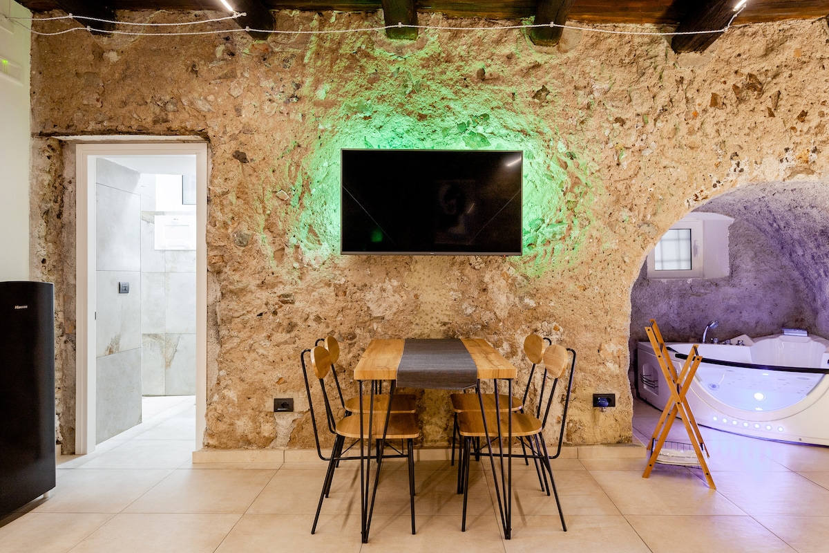 The apartment, with a separate entrance, is located in the historic center and is completely renovated. With attention to detail, the loft is designed to enhance the contrast between ancient and modern, with living stone walls and exposed beams that blend into the industrial chic style. The space, equipped with every comfort, has a kitchen, TV, coffee machine, fiber WiFi A hot tub, inside a vault at the foot of the bed, offers guests moments of relaxation.
