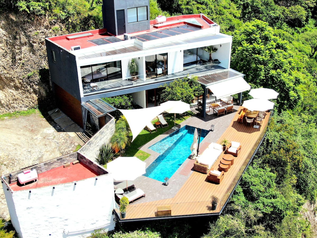 Internada in the mountains of Acatitlán, La Casa Prieta emerges as a living masterpiece of the outstanding Architect Guillermo de la Cajiga. Its strokes are intertwined with the majesty of the surroundings and dazzling views. It has terraces, central patio, open kitchen, dining room, living room, library, three bedrooms with closet, three full bathrooms, balconies and laundry room. Includes access to La Terraza Acapulco (shared), with lagoon, palapa with kitchen, dining room, living room and solarium with jacuzzi.