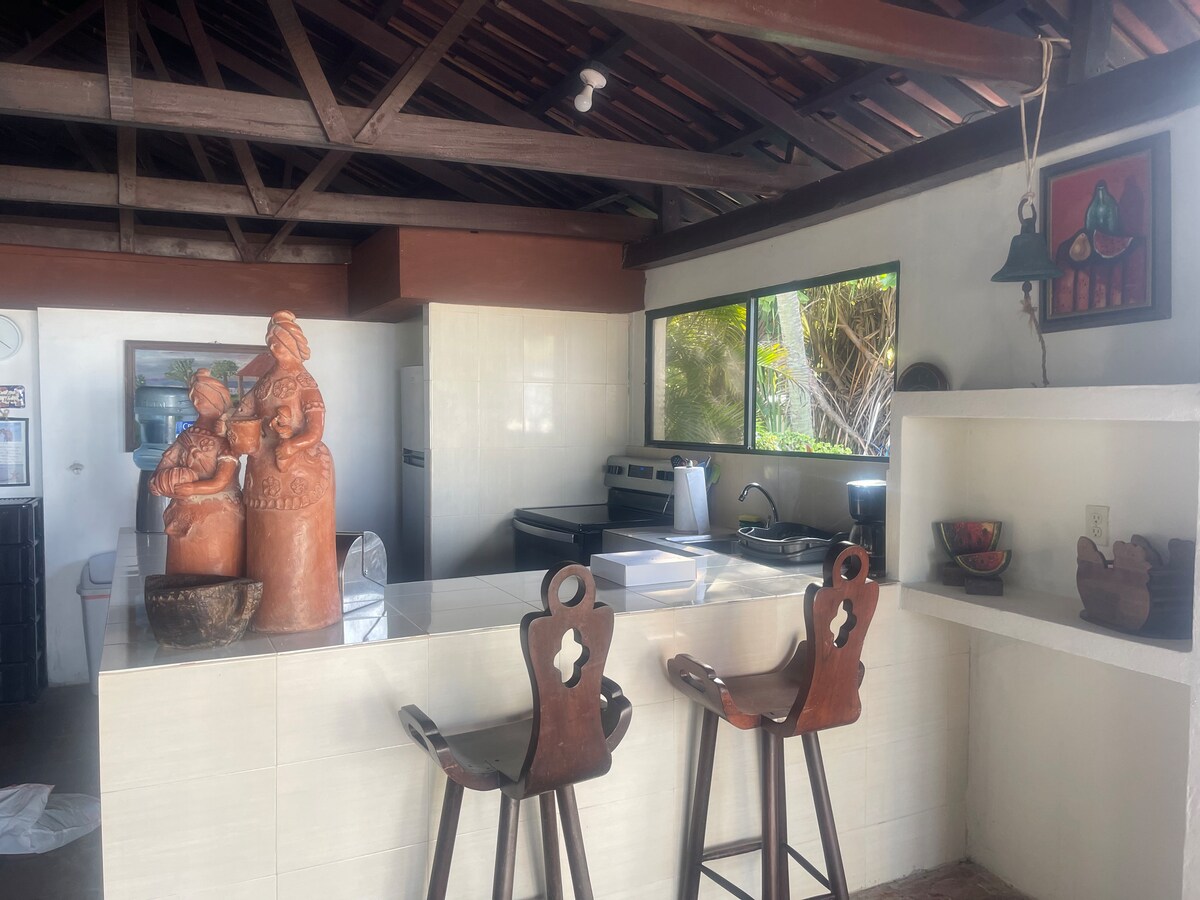 This beautiful American stile house was build in 12 years ago, big areas, each bedroom has a bathroom. This five bedrooms 5 bathrooms house has brand A/C units. Amazing corridor and open areas with wood tables and chairs. You can relax on hamacas, rocking chairs and big bar area. This quite house feels like home. The kitchen and bar area is fully equipped if you like to cook your own meals. Is only 50’ from the beautiful salvadorean beach, come and relax watching the sun arise and sunset.