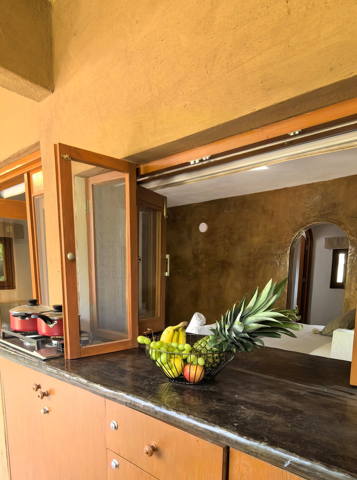 The house is situated in a beautiful valley nestled in the Tepozteco mountain range. The location is peaceful, quiet and safe. Its architecture is reminiscent of North African desert houses, offers comfortable spaces with private areas suitable for two couples or one family. The living and dining rooms open onto the garden. All the necessary amenities for cooking and enjoying meals are provided. Whether you want to sleep, relax, meditate, walk, or read, this is the perfect place! good internet
