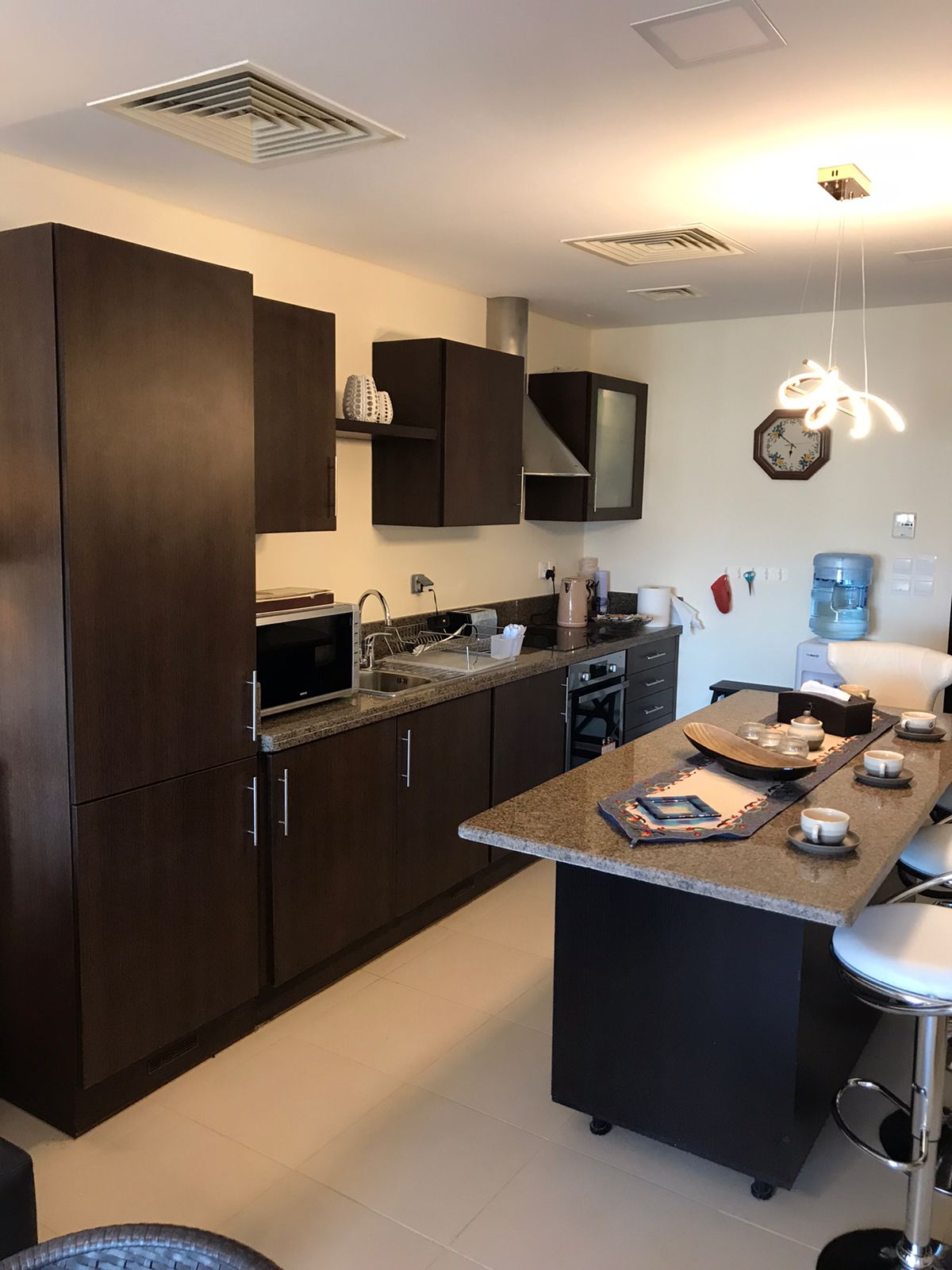 You are located in the most perfect spot in the center of Amman , in Um Uthainah Gharbi. Luxury apartment, walking distance to many fine restaurants and cafes, you couldn’t pick a more perfect location to explore Amman. Private modern patio half shaded with beautiful waterfalls and barbecue area, spacious for family and friends gathering. 24/7 manager to help you in any requests.