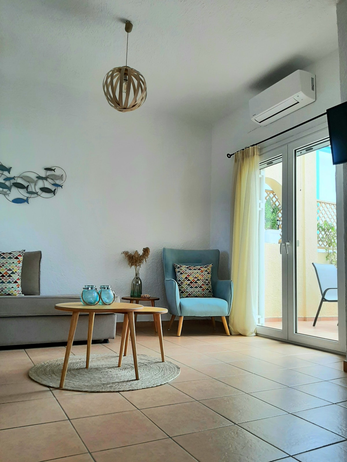 Pleasant accommodation in a residential complex. A renovated (2018) apartment drowned in a cretan garden full of olive trees, lemon trees, carob trees, cypresses, scents and bird ticks. A quite, bohemian, distinctive nest next to the sea for couples, families and even group of friends who seek the bliss of nature, 5 km from Agios Nikolaos.An attempt to overcome the dividing line between indoor and natural environments and reconcile the Greek tradition with modernism and comfort