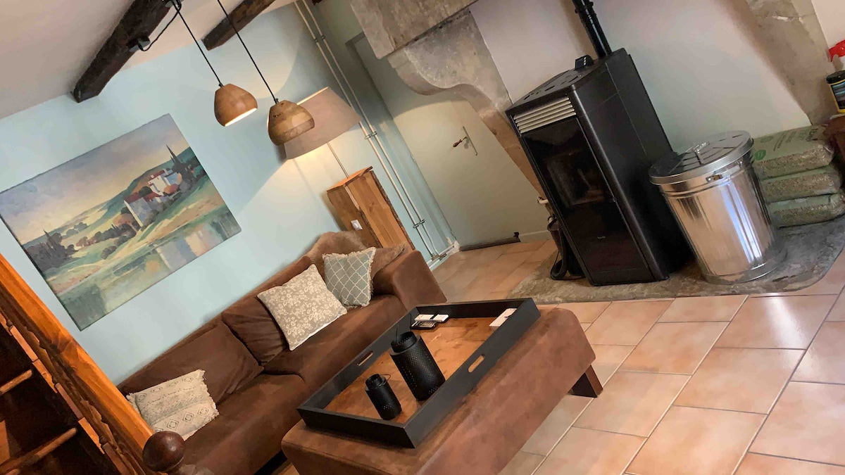 Charming detached cottage for 2 to 4 people, 45 m2. Cocooning atmosphere guaranteed with: - 1 bedroom (140 x 190 bed) - 1 large shower room - 1 spacious living room with sofa bed with 140 mattress, equipped kitchen (induction stove, oven, microwave, dishwasher,...) - raclette and fondue machine, pancake maker - TV, free Wi-Fi - parking - pellet stove heating - bed and bath linens provided