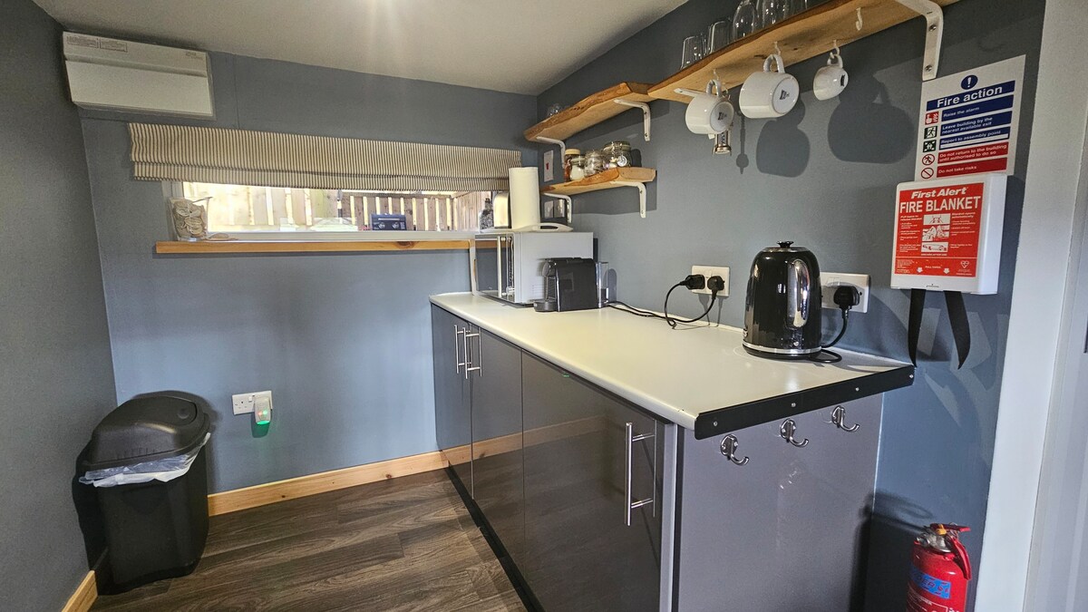 The Wee Hoosie offers you comfortable and cozy accommodation on a self-catering basis. The studio has a corner kitchen equipped with a full size cooker and fridge. There is an en-suite showerroom. The sun rises to the front and sets to the back, making this a light and bright space and with the wee garden with a patio to the rear you can enjoy a tiny home from home. There is private parking which affords more privacy. The studio is located in the garden of our home, we are on hand if required.
