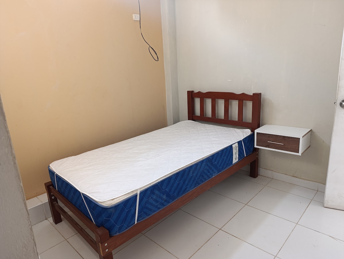 Disfruta de la sencillez de este alojamiento céntrico, ubicado en urbanización cerca del recién renovado óvalo la familia de Nuevo chimbote. La habitación cuenta con cama de 1 1/2 plaza, velador flotante, ropero empotrado, mesa y silla; además tiene baño independiente dentro de la habitación con rapiducha. Se entrega 1 toalla desinfectada y papel higiénico por habitación.