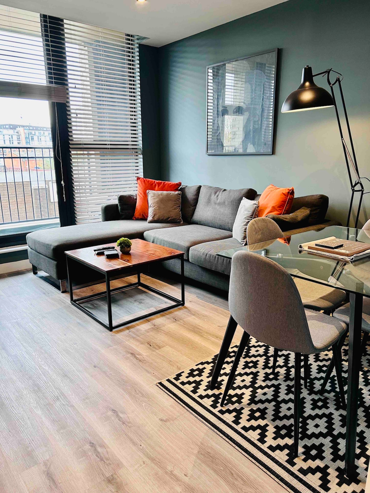 Stylish city center apartment, thoughtfully furnished. Boasting a serene balcony and nestled within the tranquil green quarter. Relax in a spacious king-size bed paired with an exceptional Emma Original Hybrid mattress. Stay connected with fast 5G home broadband. Ideally situated in close proximity to the AO arena and Victoria Station for easy access to football stadiums and beyond.