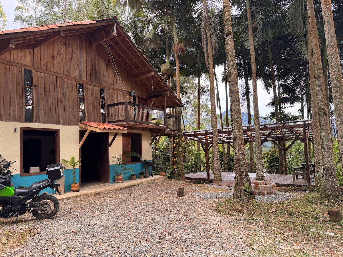 Cabin in Garden - Antioquia, in a quiet sector just 20 minutes by car from the main park. It has a magnificent view of a guaduas forest from its balconies and jacuzzi. You can enjoy hiking trails, visit crystal-clear waterfalls and rivers, do birding, coffee tours and adventure activities in the region. Includes farmhouse breakfast.