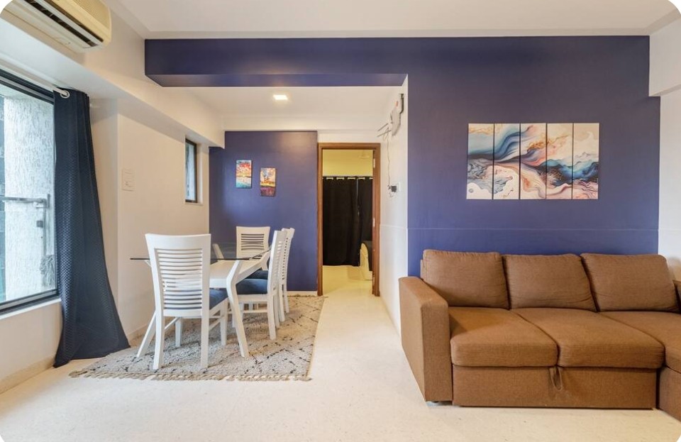 Welcome to Your Modern Day-Chic 1-Bedroom Apartment Retreat near BKC! With its minimalist design, ample workspace, entertainment options, and essential amenities, it caters to the needs of both business and leisure travelers! Features: ★ Large Work-Desk ★ Free High-Speed WiFi ★ Smart TV ★ Tata Sky with all HD Channels ★ Sound Bar ★ Microwave/Fridge ★ Air Fryer ★ Air Purifier ★ Water Purifier Book now and experience the perfect blend of modernity and comfort!